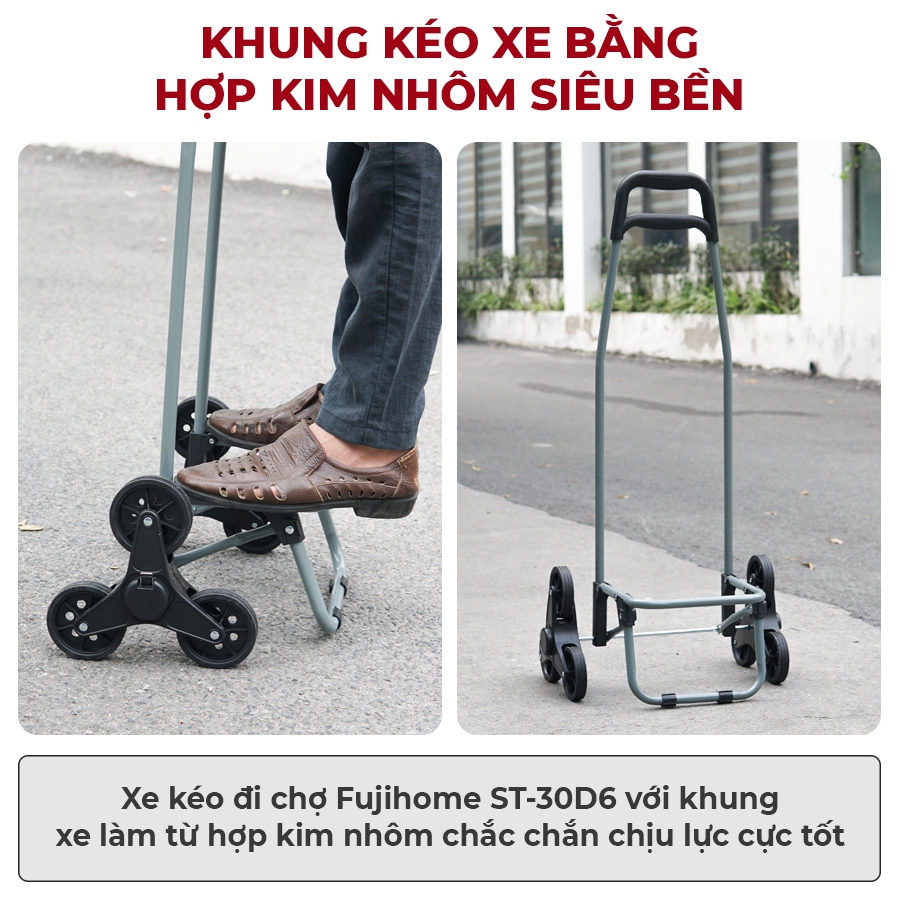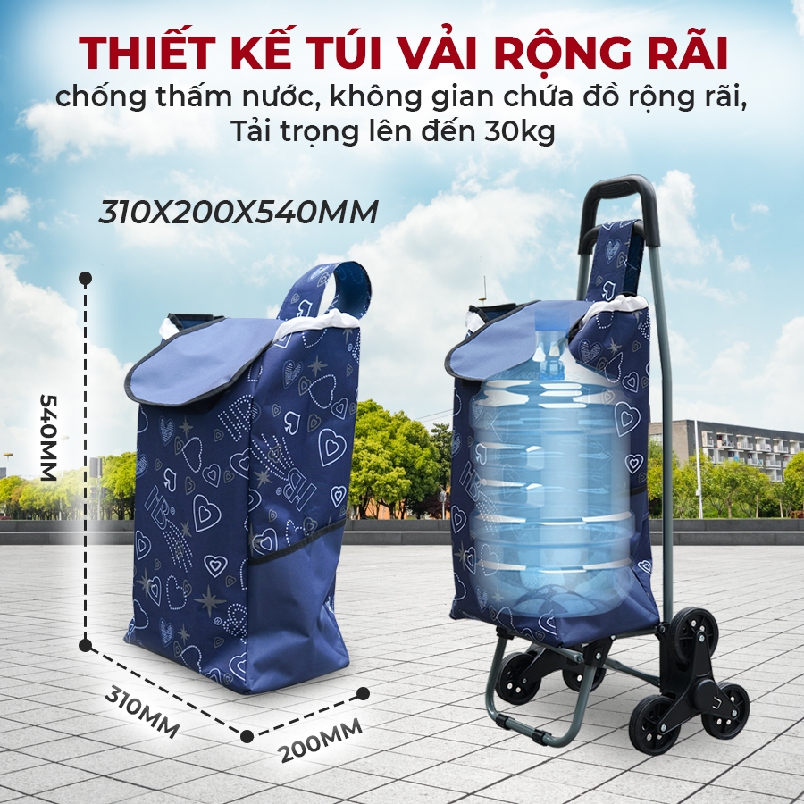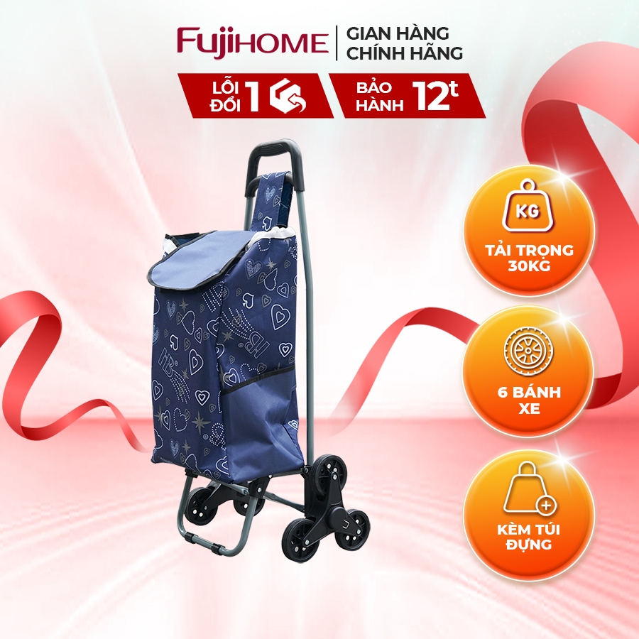 Xe kéo đi chợ nhập khẩu FUJIHOME ST-30D6 Tải trọng 30kg - 6 bánh leo cầu thang - kèm túi vải đi kèm
