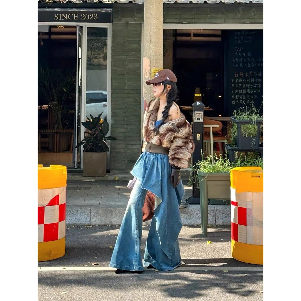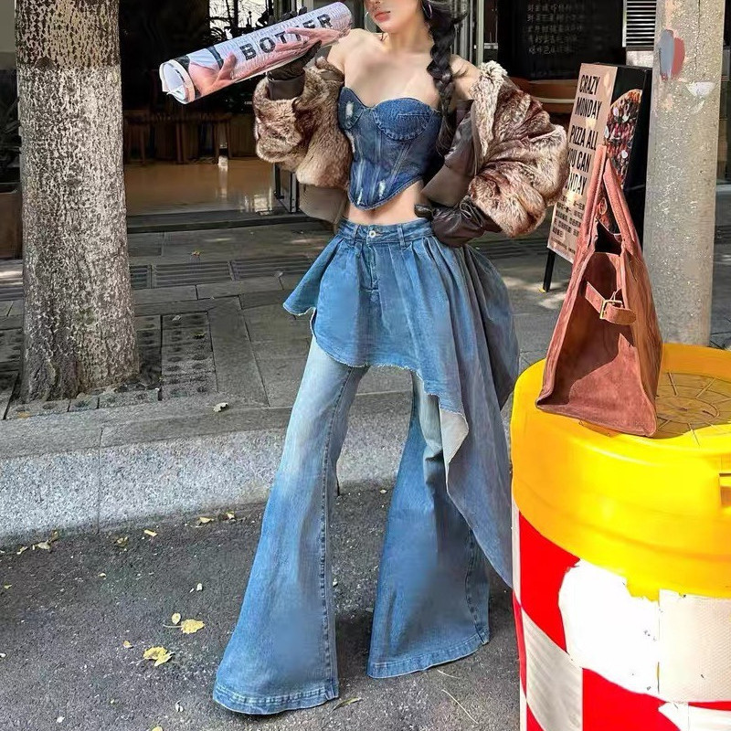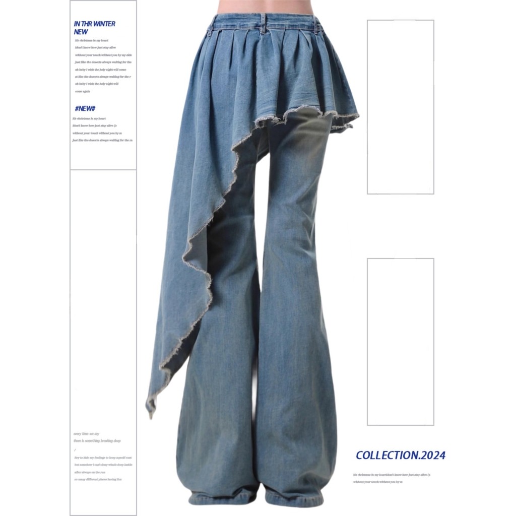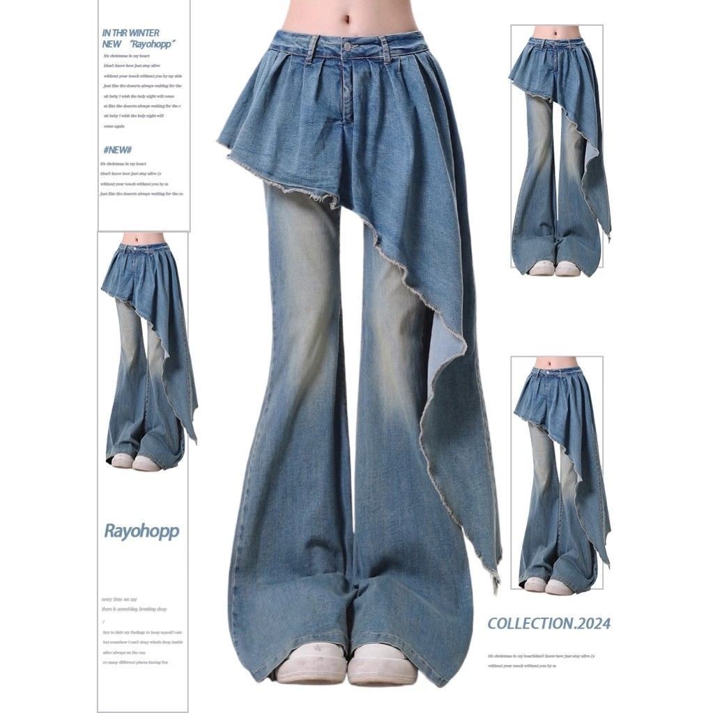 Women's Jeans Spring New Trendy Street Style Ribbon Design Washed Vintage Flared Hot Girl Long Pants