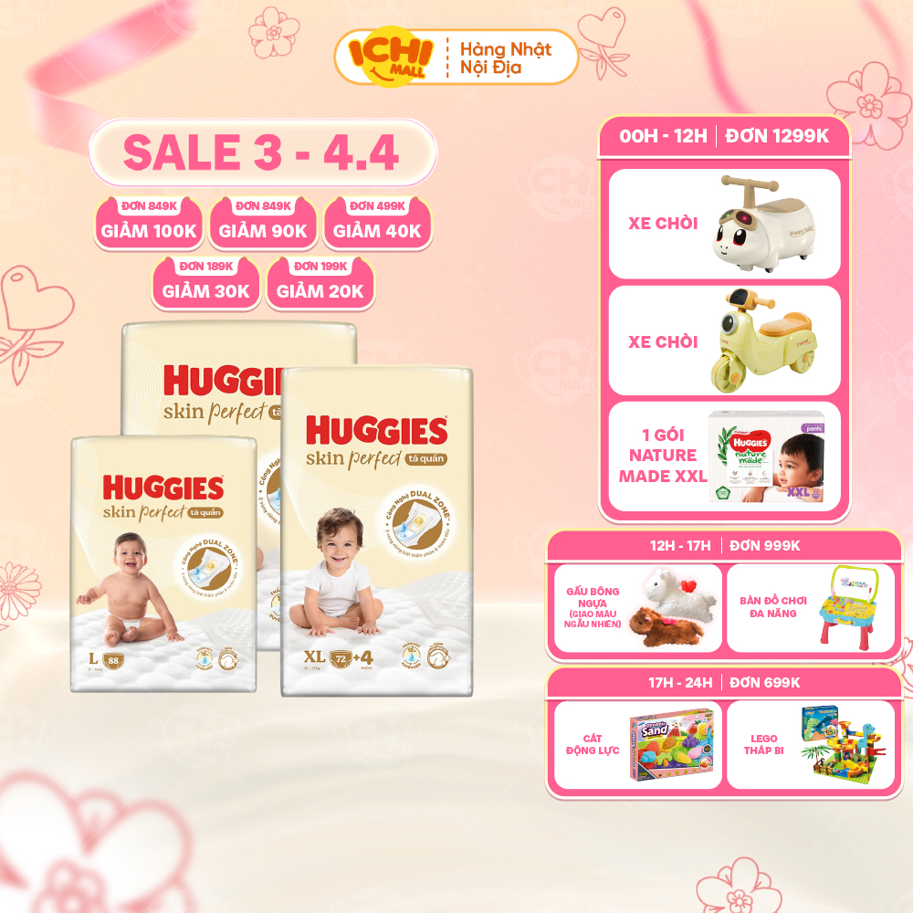 Tã dán/quần Huggies Skin Perfect phiên bản mới size NB76/S82, nâng cấp từ Huggies Tràm Trà _Ichimall