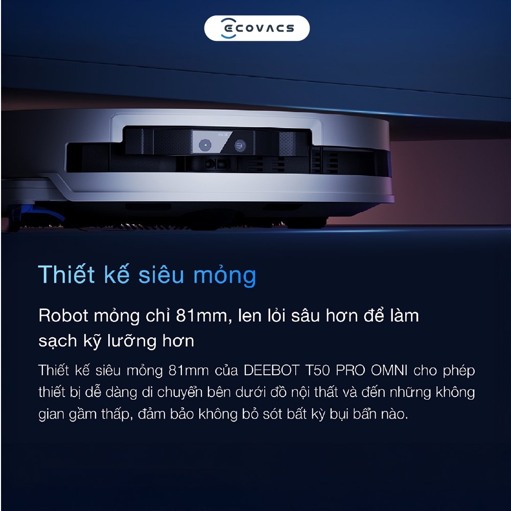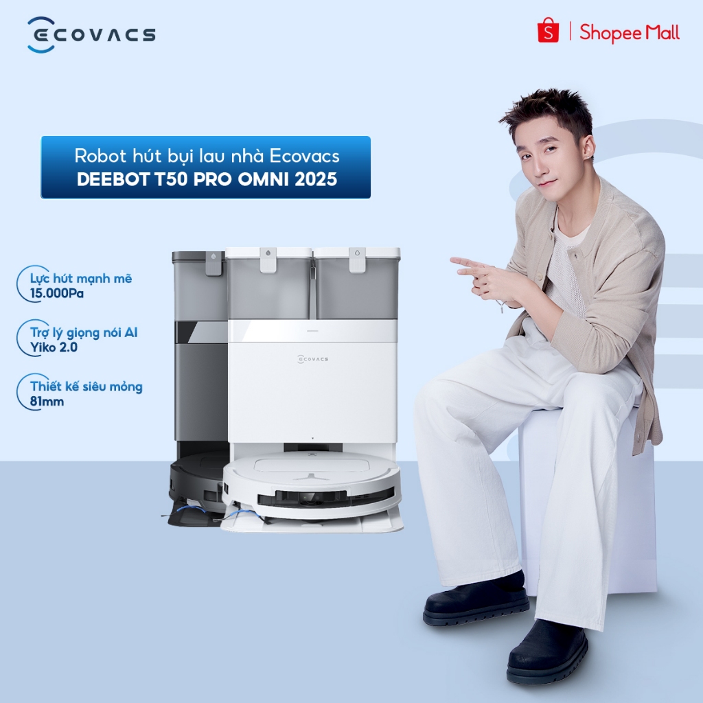Robot hút bụi lau nhà Ecovacs Deebot T50 Pro Omni 2025 - Lực hút mạnh mẽ 15.000Pa - Pin dung lượng lớn 6.400mAh