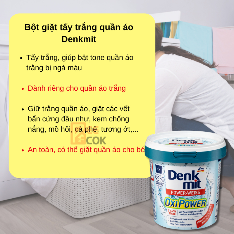 Bột Giặt Tẩy Trắng Quần Áo Denkmit Oxi Power 750gram Tẩy Trắng, Làm Sạch Quần Áo Trắng