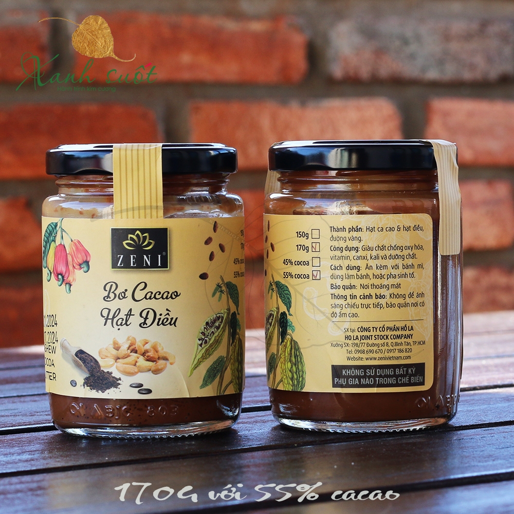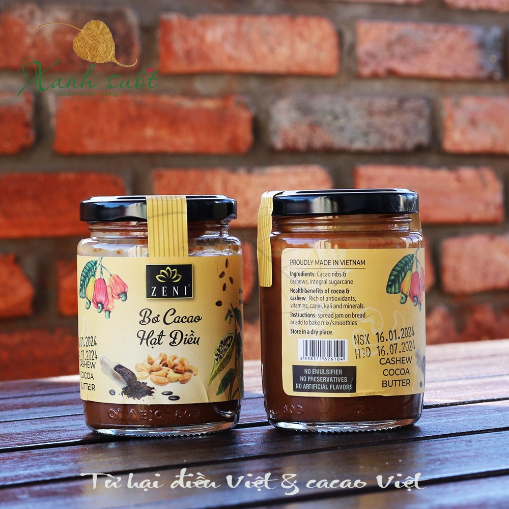 [Zeni] Bơ Cacao Hạt Điều- Béo Ngậy, Thơm Ngon, Healthy, Không Chất Bảo Quản, Thuần Việt- Cashew Cocoa Butter [Xanh Suốt]