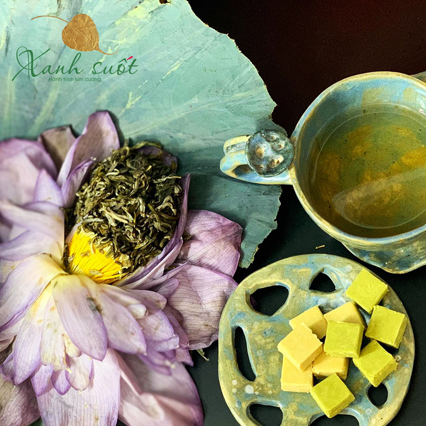 [Dã Vị] Trà Sen Tươi Hồ Tây- Frozen Lotus Green Tea- Từ Trà Shan Cổ Thụ Và Sen Bách Diệp Tây Hồ- Quà Đặc Sản [Xanh Suốt]