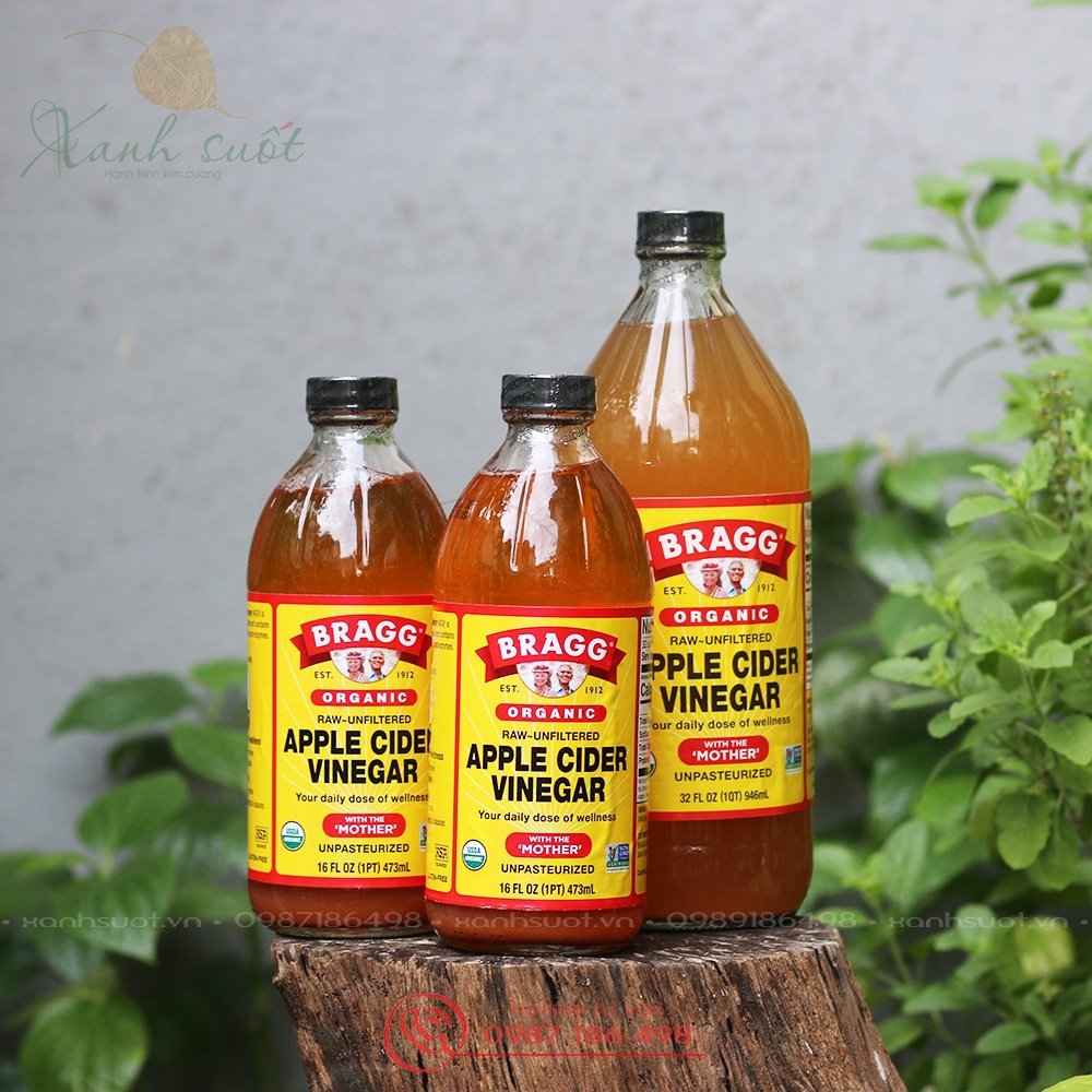 [BRAGG] Giấm Táo Hữu Cơ- Có Giấm Cái- Tốt Cho Tim Mạch, Giảm Cân, Bổ Sung Chất Xơ Và Lợi Khuẩn- Bragg ACV [Xanh Suốt]