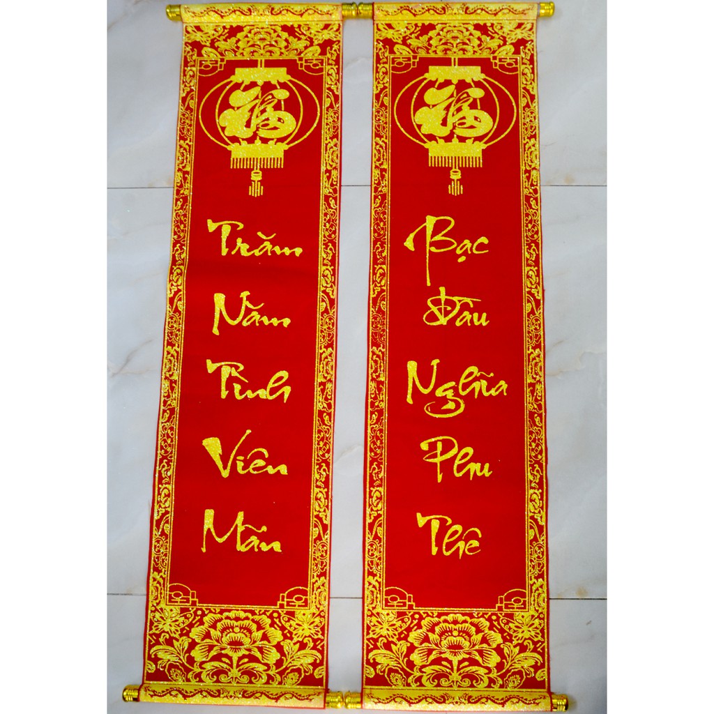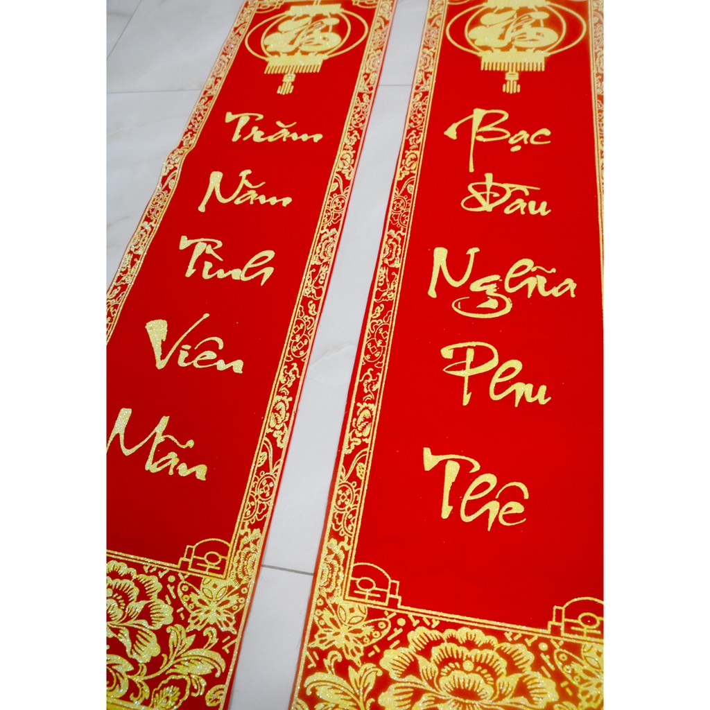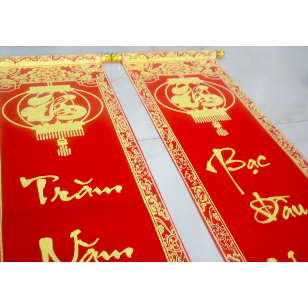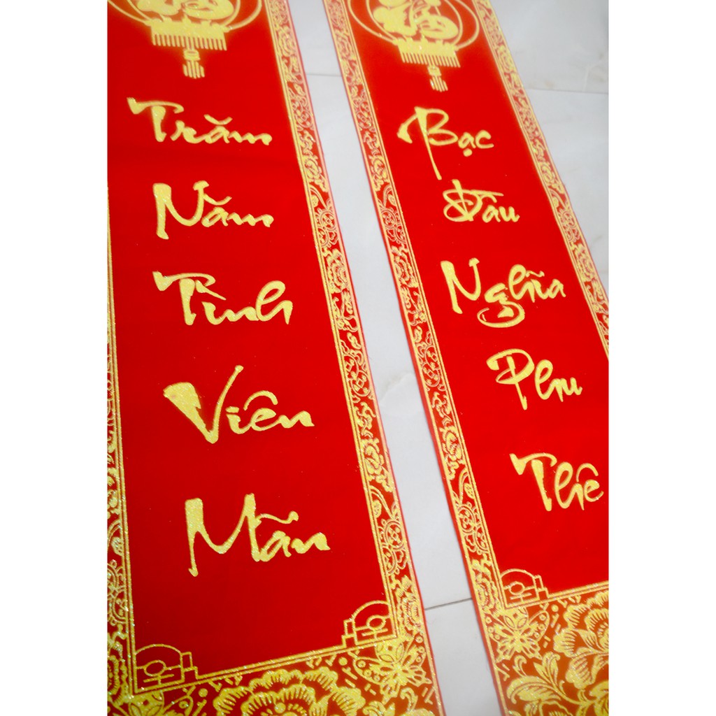 Cặp liễn nhung câu đối đỏ đám cưới-Trăm năm tình viên mãn-khổ 30x106cm