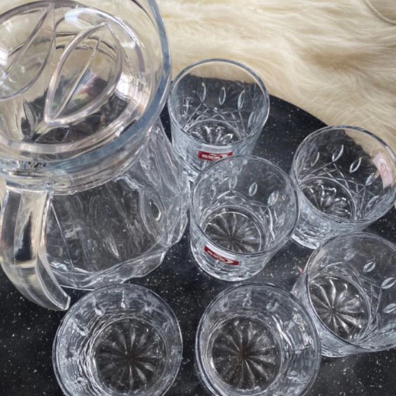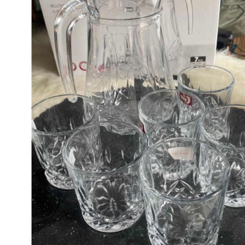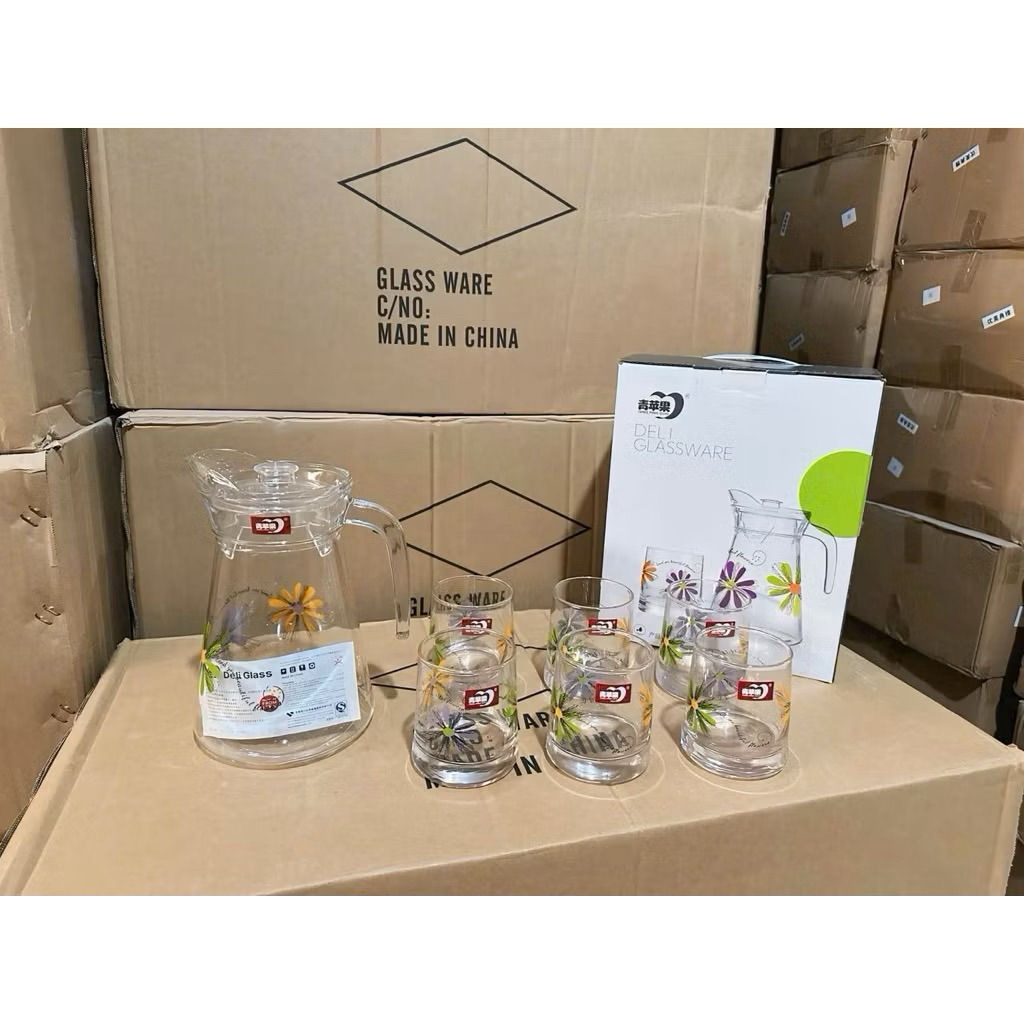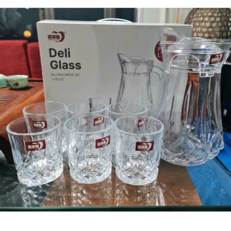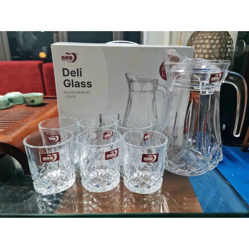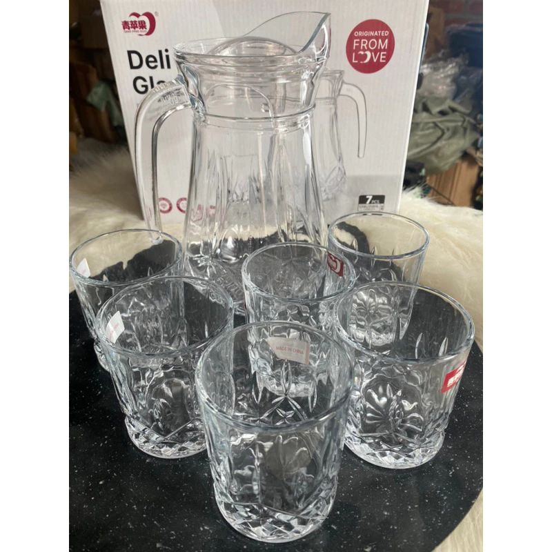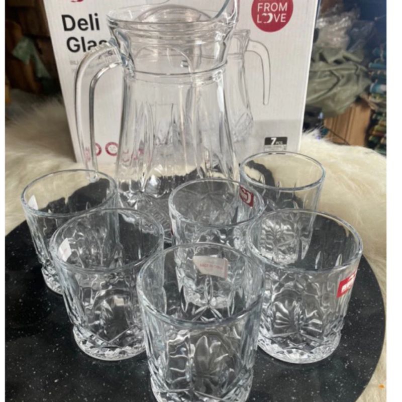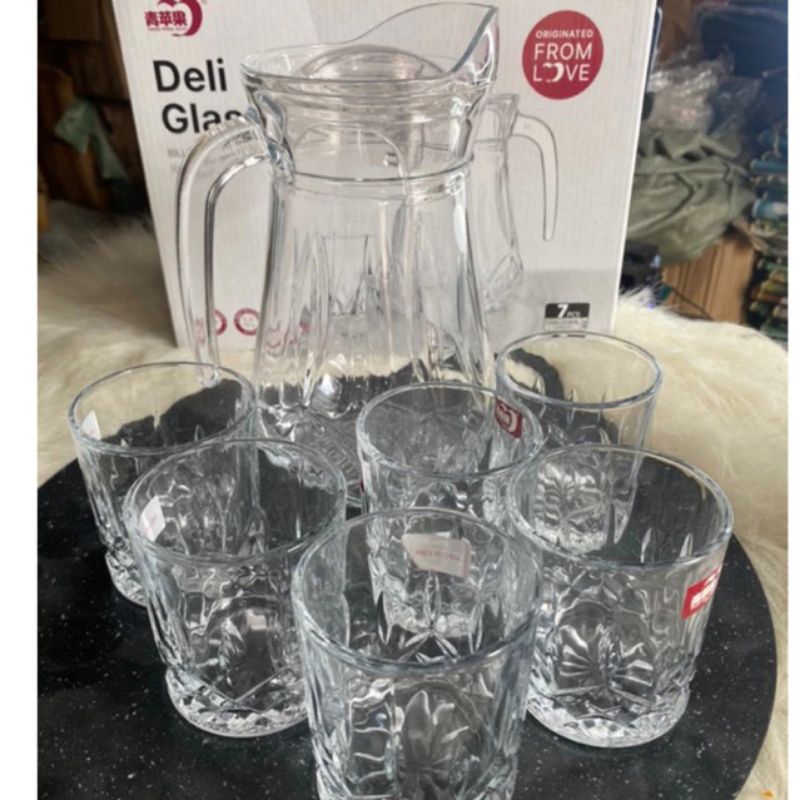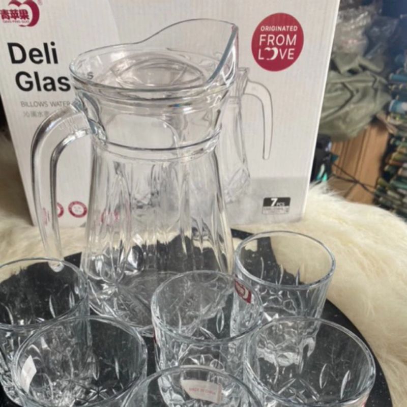 bộ bình 6 cốc thuỷ tinh cao cấp deli sang trọng lịch sự.bộ bình cốc thuỷ tinh kẻ sọc