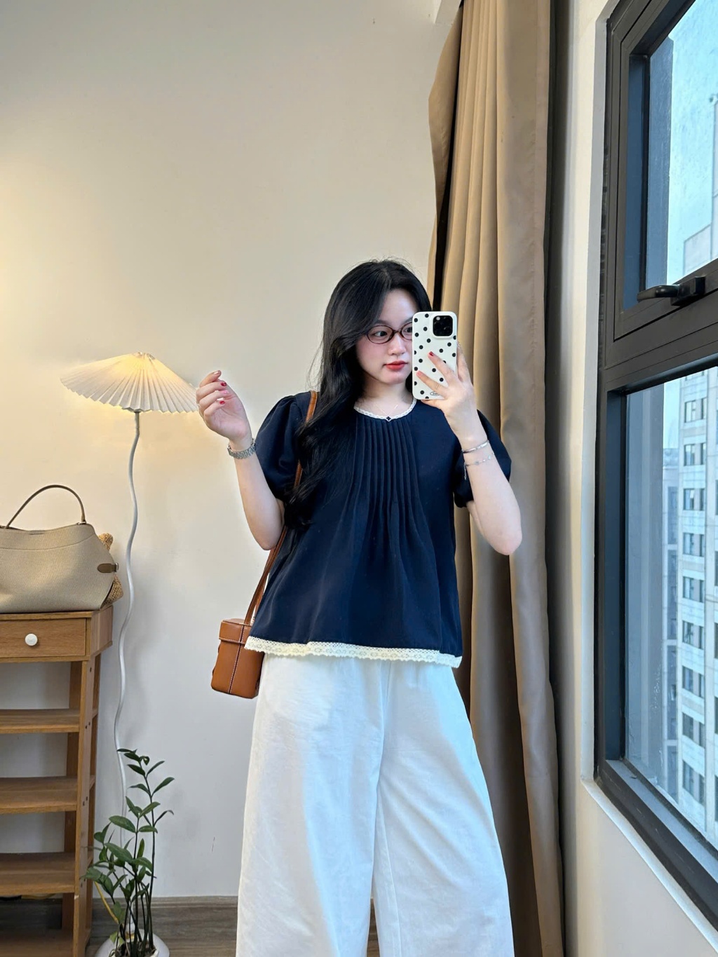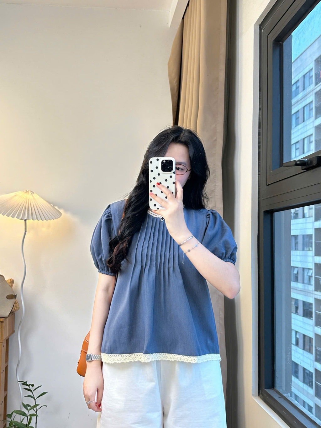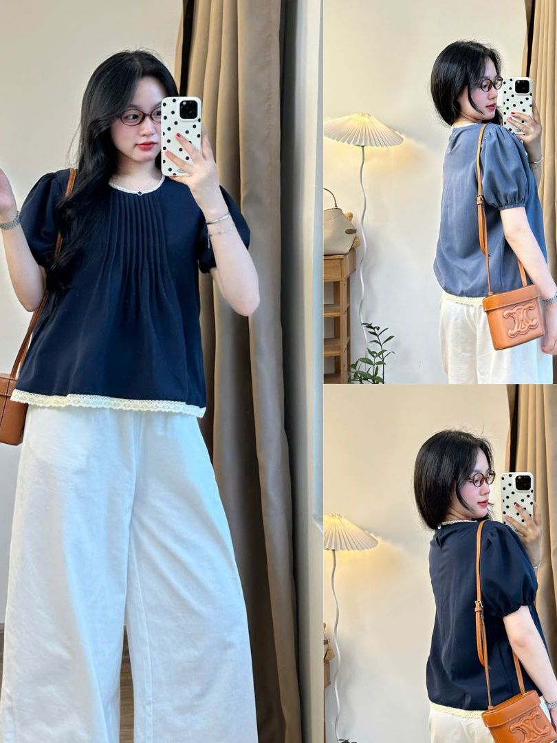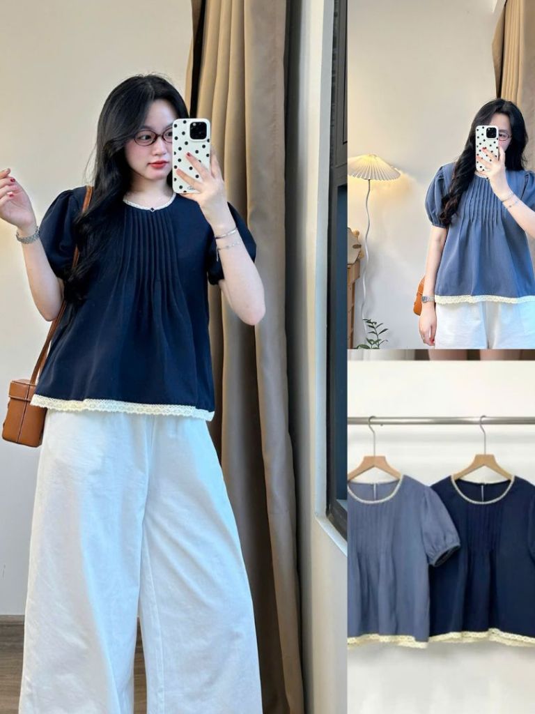 Áo Babydoll Cổ Ren Xếp Ly Tay Bo Phối Viền Ly Ngực Xinh Xắn, Nữ Tính Dễ Thương Bbdcoren3024_P13k16