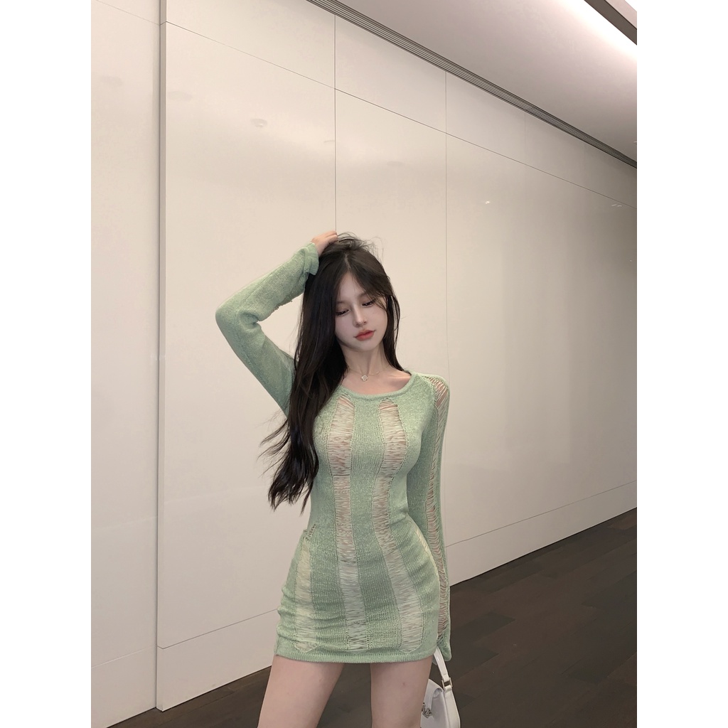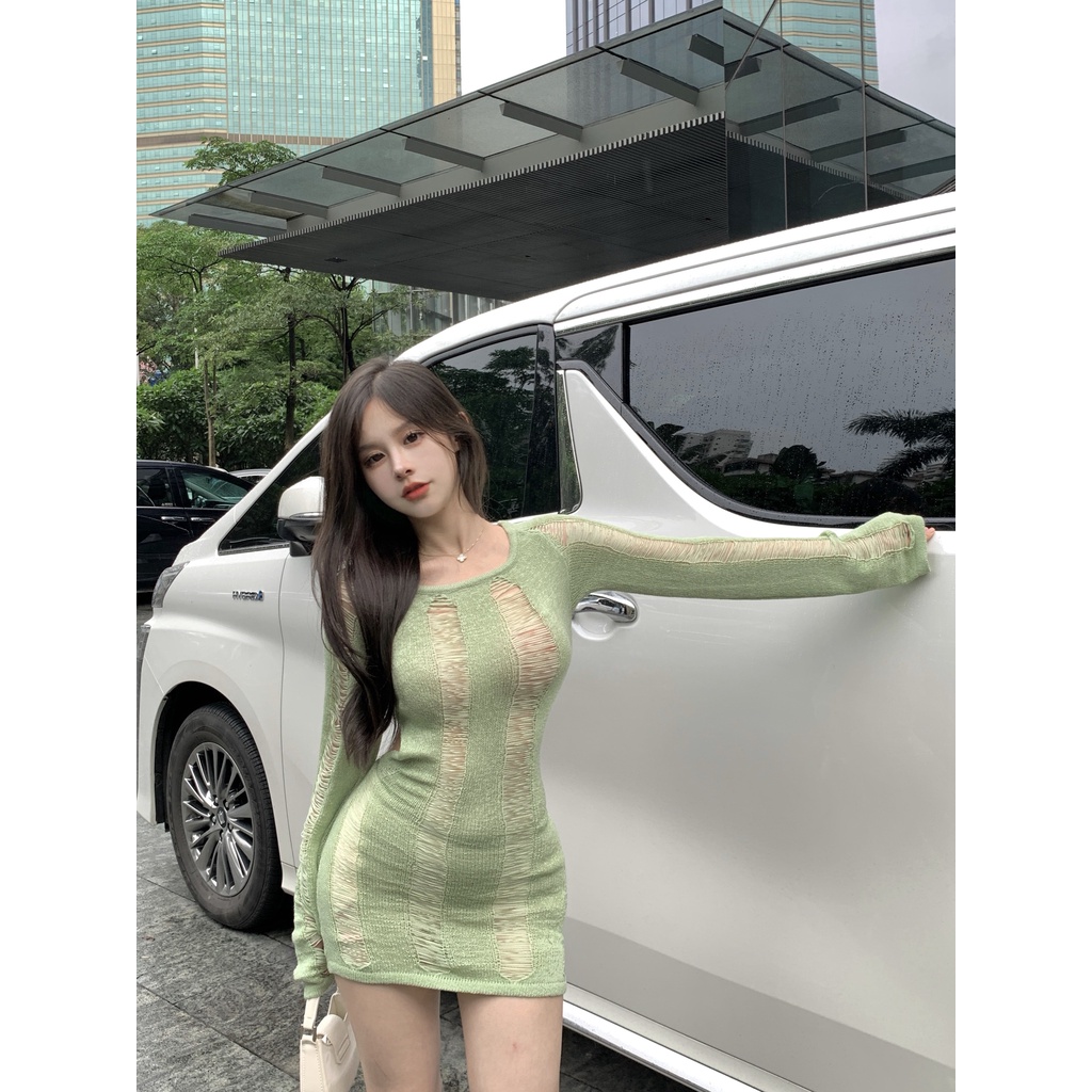 Đầm Dệt Kim Tay Dài Hở Lưng/ Không Hở Lưng Dáng Ôm Phong Cách Hàn Quốc Thời Trang Cho Nữ