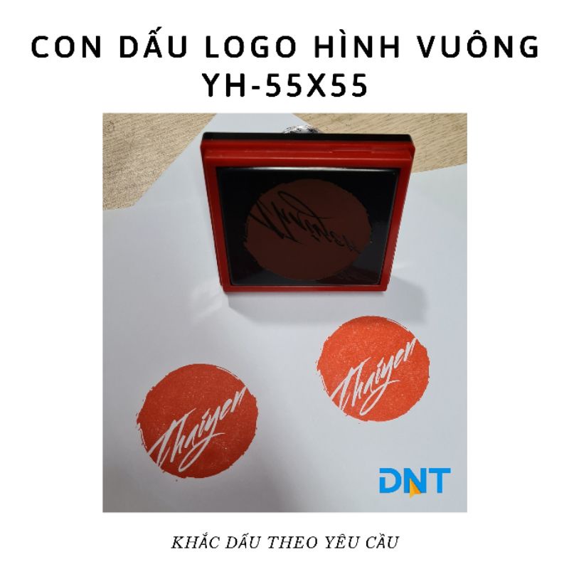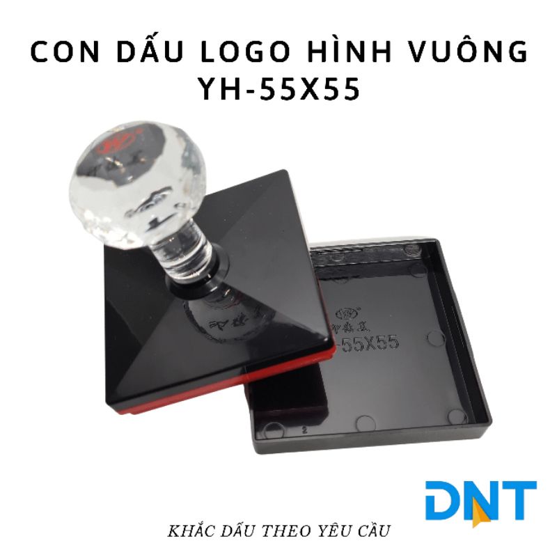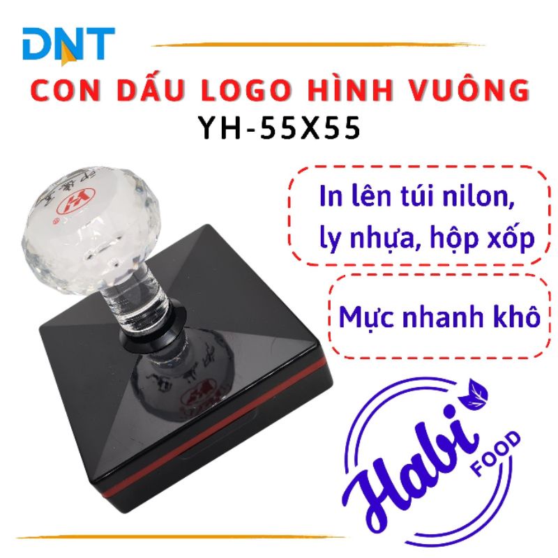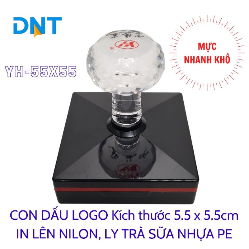 Con dấu in lên túi nilon, ly trà sữa YH-5555. Kèm 2 lọ mực Nhanh khô. Dấu logo hình vuông KT 5.5 x 5.5cm