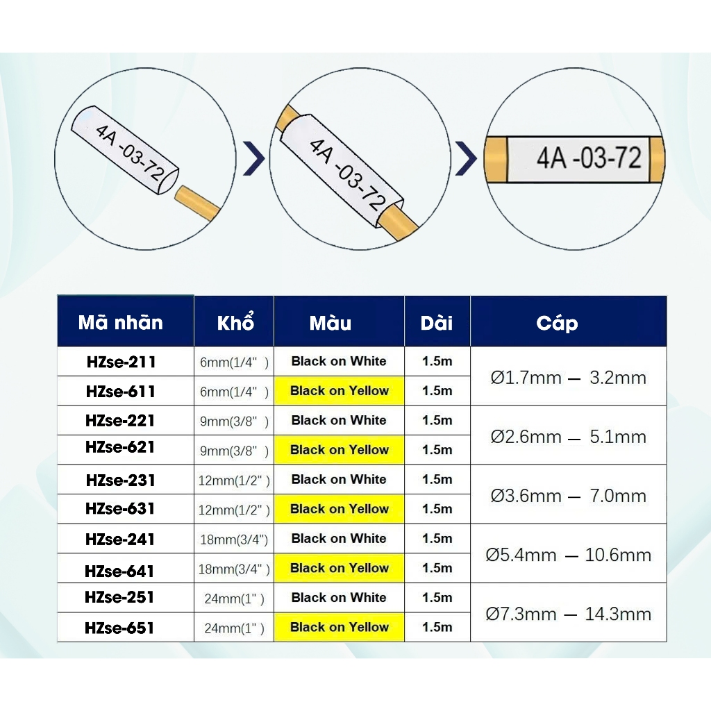 Ống Co Nhiệt HZSe-211, Khổ 6mm X 1,5m, Cáp 1.7-3.2mm