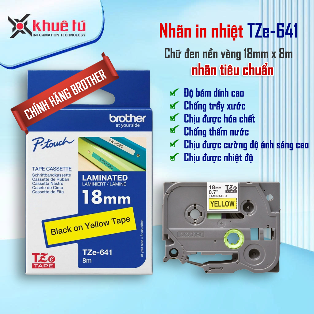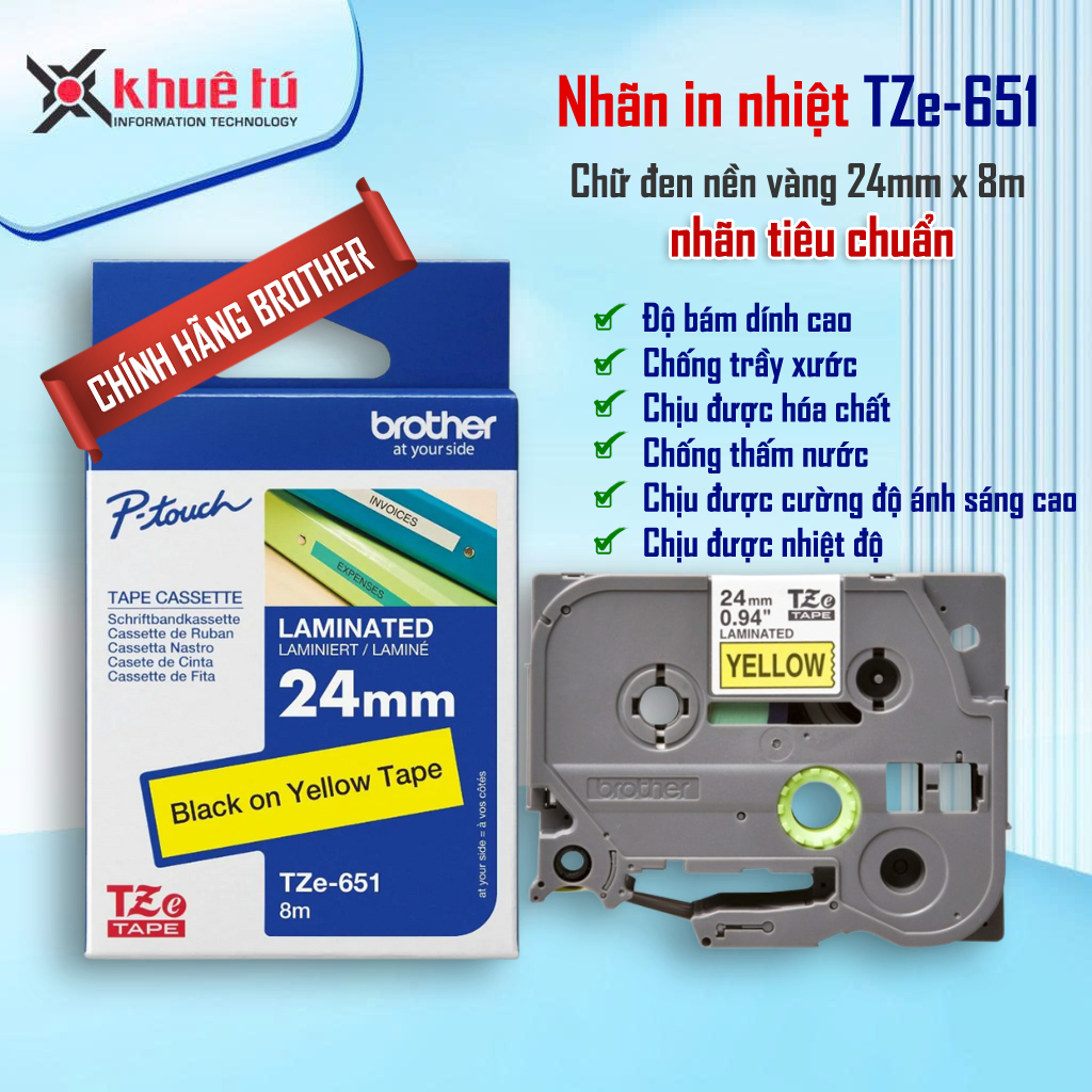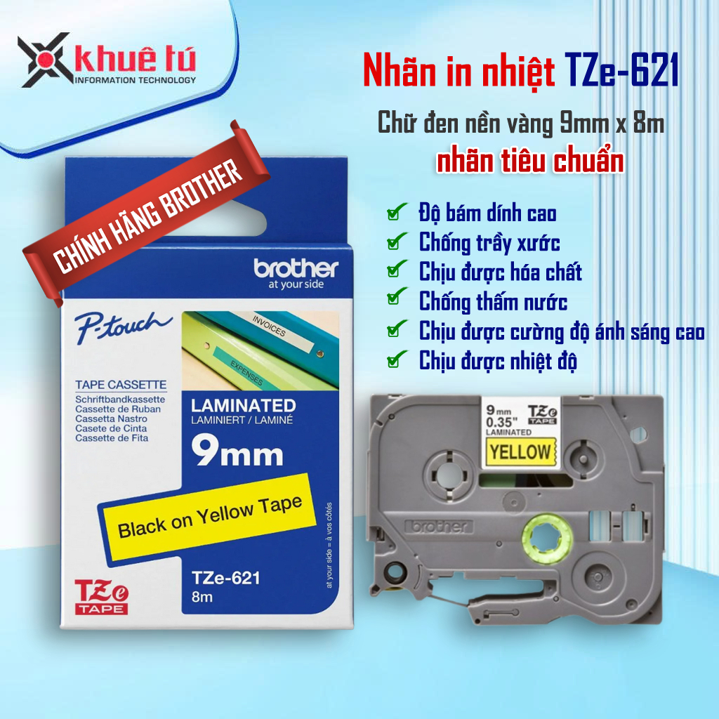 Tem nhãn TZe chính hãng Brother chữ đen nền vàng (Nhãn tiêu chuẩn)