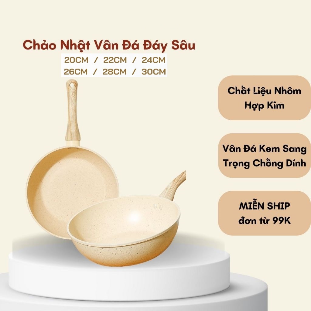 Chảo Chống Dính Bếp Từ Vân Đá, Chảo Xào nấu Màu Kem 28cm