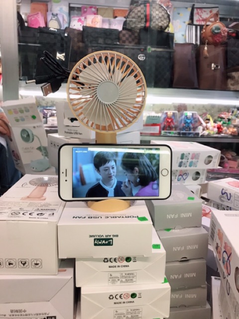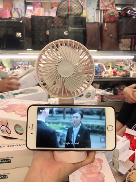 Quạt tích điện mini cầm tay có đế để điện thoại [SIÊU MÁT], [SIÊU TIỆN DỤNG]