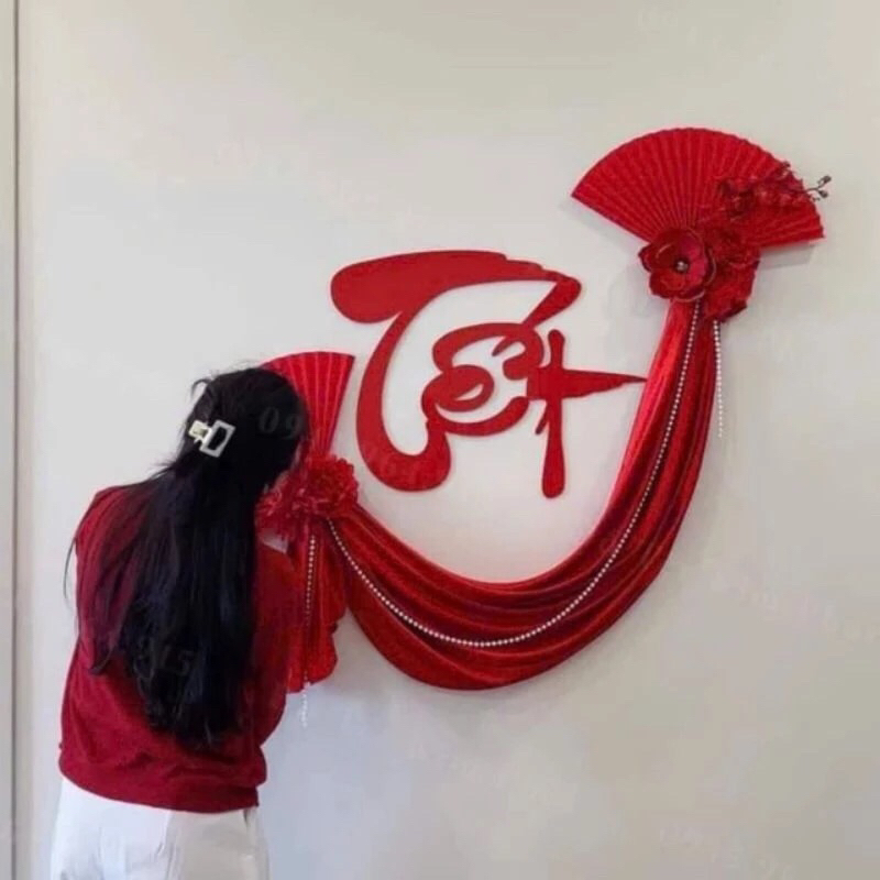 Chữ Tết Trang Trí 2026 Size Cỡ Lớn. Set Chữ Tết Nỉ Nhung Đỏ Decor Dán Mành Mẹt Dèm Cửa Kính.