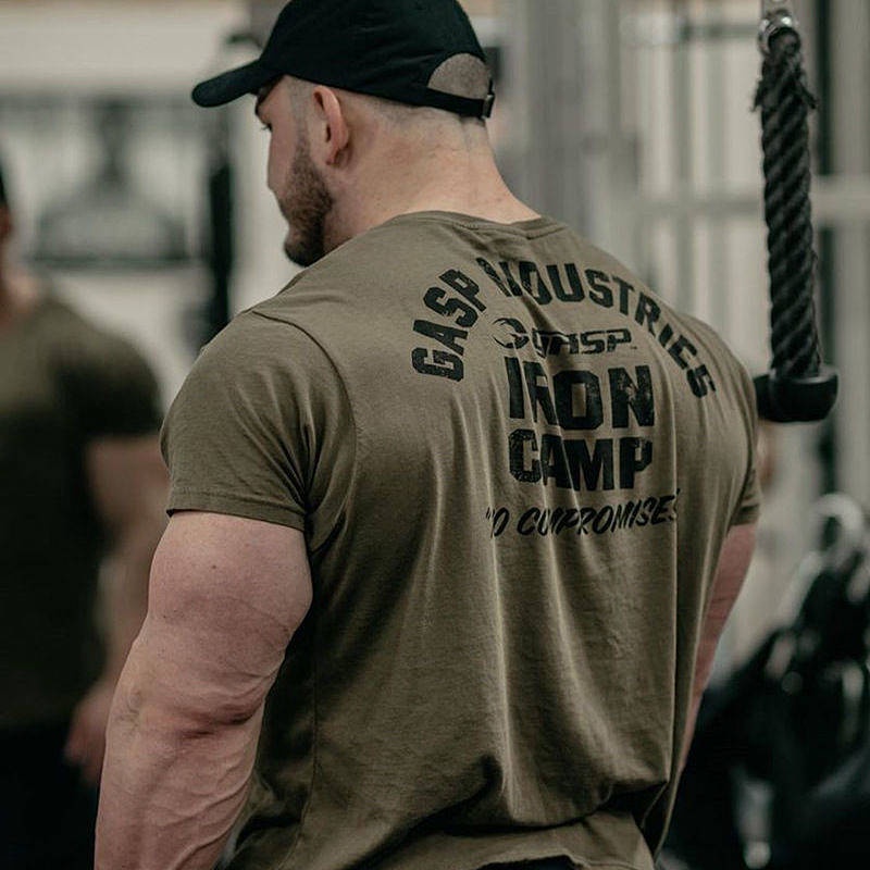 Sports T-shirt Men's Slim Fit Trendy Handsome Cotton Spring and Summer Leisure Stretch Fitness Short Sleeve Training Wait Lifting Running Top kyx1