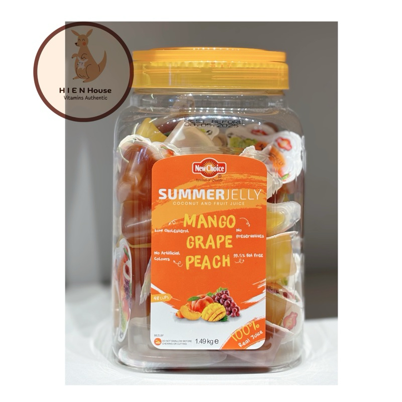(Date 08.05.2025) Thạch Rau Câu Trái Cây NewChoice Summer Jelly Mango Grape Peach 1.49kg