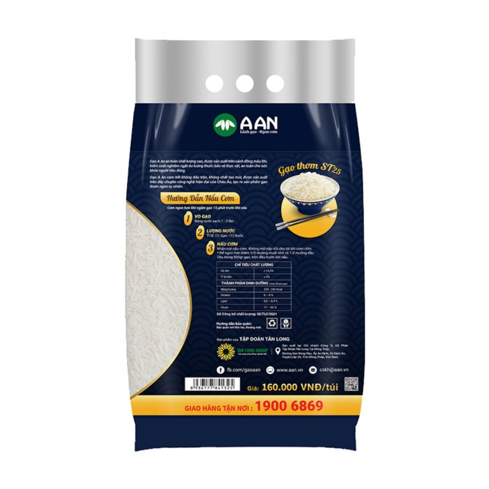 Gạo ST25 Túi 5Kg A An - Cơm mềm dẻo, thơm nhẹ, vị ngọt, Top 1 Gạo Ngon Nhất Thế Giới
