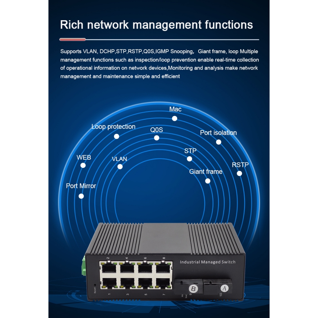 Công tắc cấp công nghiệp Gigabit 2SFP + 4 / 8RJ45 được quản lý web hỗ trợ công tắc đường ray phòng ngừa vòng lặp
