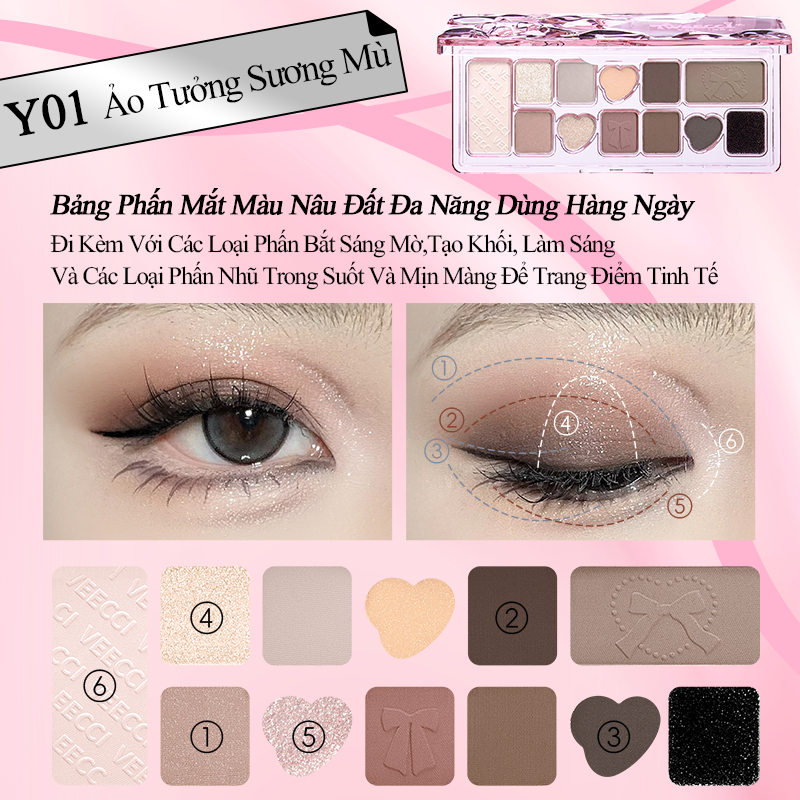 VEECCI Bảng Phấn Mắt 11 Ô Ánh Ngọc Trai Lì Đa Chức Năng Phát Triển Màu Sắc Lâu Dài Dễ Bị Nhòe 9.3g