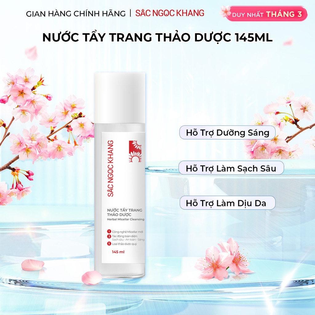 Nước Tẩy Trang Thảo Dược Thiên Nhiên Sắc Ngọc Khang 145ml giúp làm sạch sâu bụi bẫn bã nhờn & ngừa mụn HDT