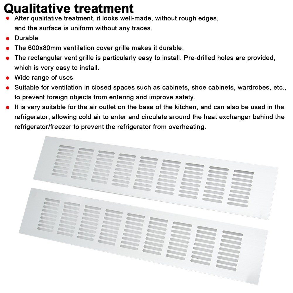 CONOPERY Bộ 2 Lỗ Thông Khí, Nhiều Kích Thước Lưới Tản Nhiệt Thông Gió Hợp Kim Nhôm, Gắn Trần Hình Chữ Nhật Kim Loại Có Lỗ Thông Hơi Ống Xả Tấm Thông Hơi Tủ Quần Áo Thông Gió