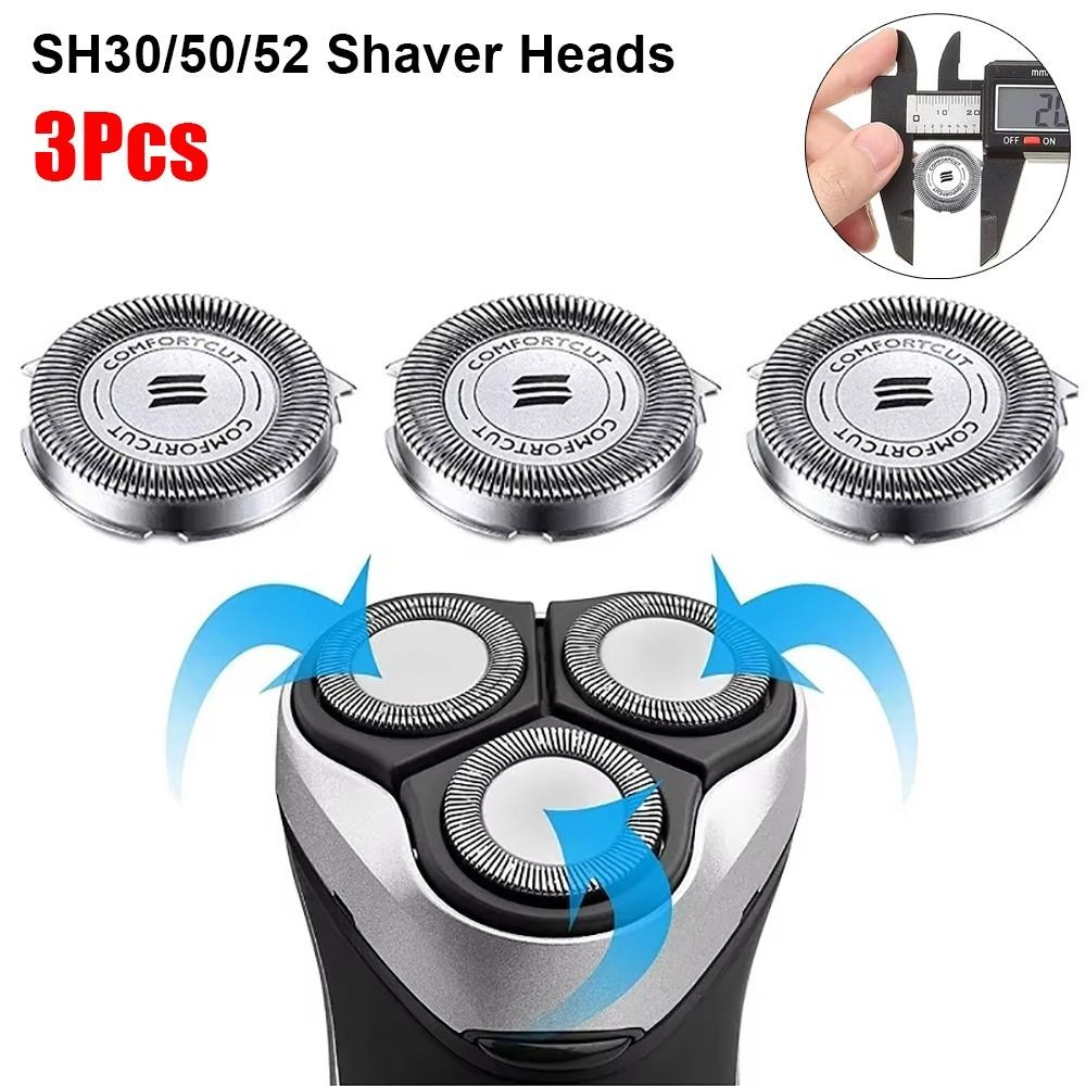 WAY2TOP 3 Đầu Thay Thế, Đầu Cạo Râu Bạc Kim Loại, Phụ Kiện Máy Cạo Râu Điện Vòng Đôi SH30 / 50 / 52 Bền Đẹp Cho Máy Cạo Râu Điện Series 1000 2000 3000 5000