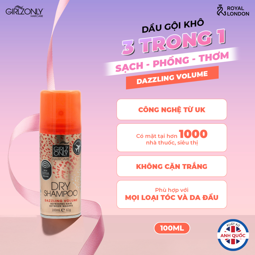 Dầu Gội Khô Dry Shampoo Girlz Only Dazzling Volume (Cam) Hỗ Trợ Làm Phồng Tóc Travelsize 100ml