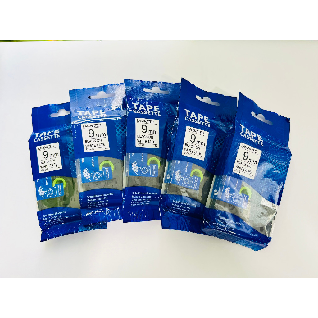 Nhãn in AZe-221 [9mm x 8m - Chữ đen nền trắng ] Dùng cho Máy Brother PT-E110/ PT-E300/D210/ E1000Pro..