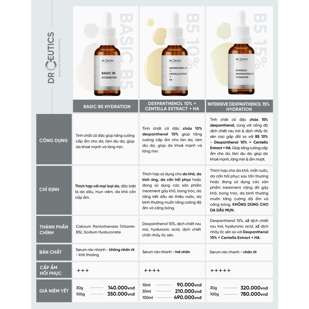 Tinh Chất DRceutics B5 basic, 10%, 15% Serum cấp ẩm phục hồi toàn diện 30ml, 100ml