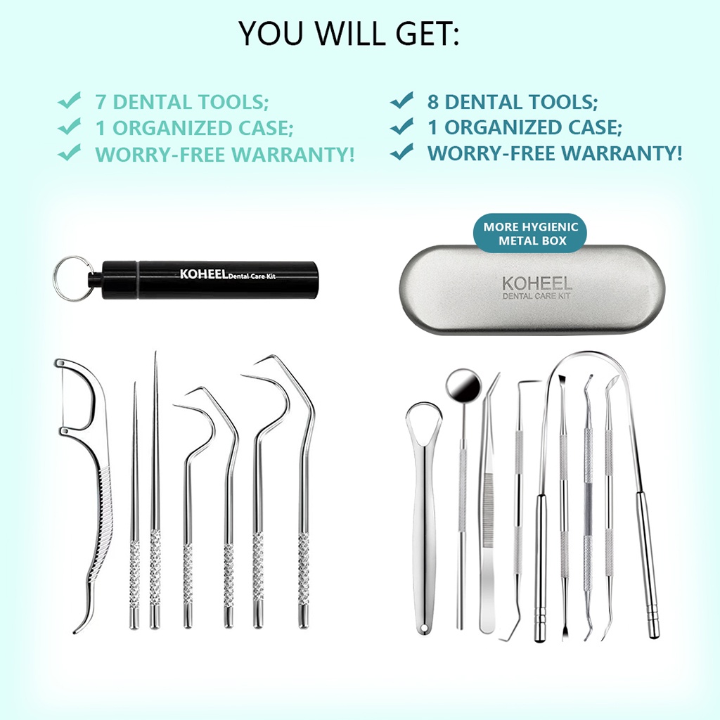 KOHEEL Bộ Dụng Cụ Chăm Sóc Răng Gồm 8 Món Bằng Kim Loại Làm Sạch Răng Miệng Và Tăm Xỉa Răng Có Thể Tái Sử Dụng