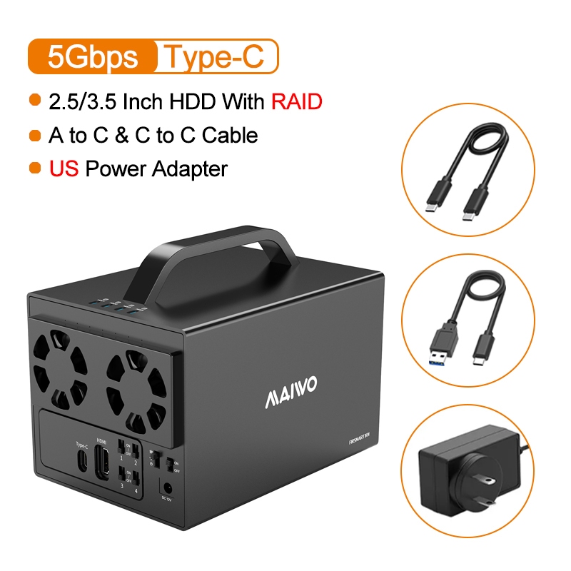 Vỏ ổ cứng gắn ngoài MAIWO 4 Bay RAID có cổng HDMI 3.5 '' Type-C sang SATA HDD SSD Vỏ hỗ trợ 7 chế độ RAID