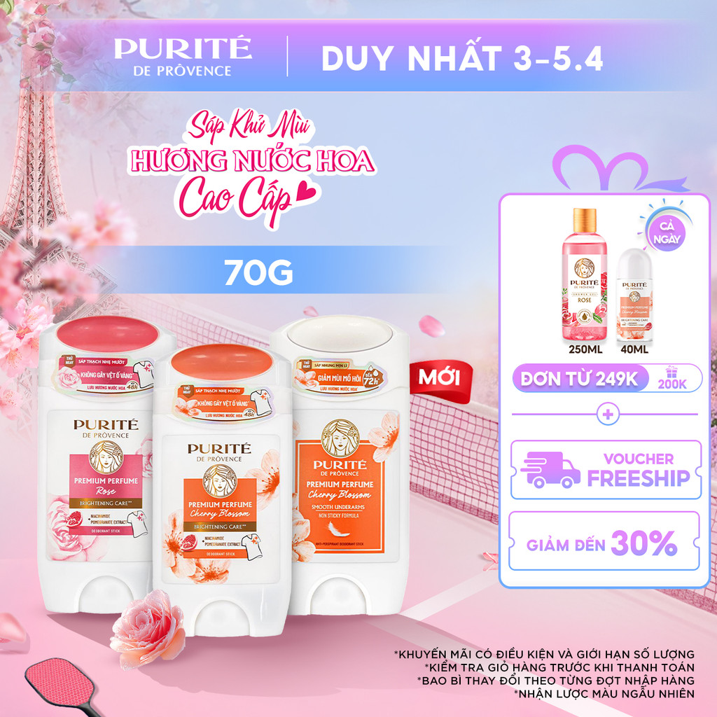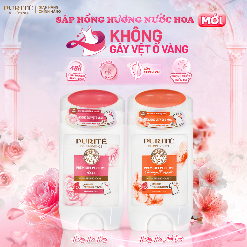 [MỚI] Sáp Khử Mùi Purité Hương Nước Hoa Cao Cấp Dưỡng Sáng Hoa Anh Đào / Hoa Hồng 70G (Sáp Hồng / Sáp Trắng)