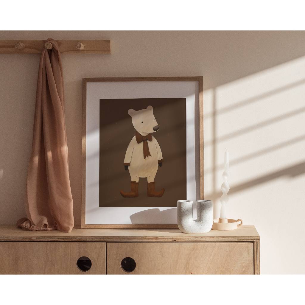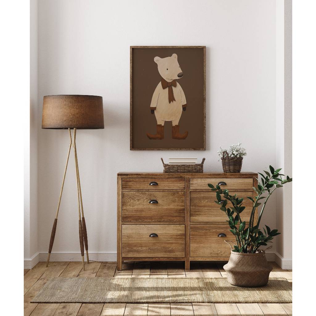 Tranh treo tường, Bear Poster, Brown Bear Print, Woodland Nursery, nhận in theo yêu cầu, tặng kèm đinh treo tranh (256)