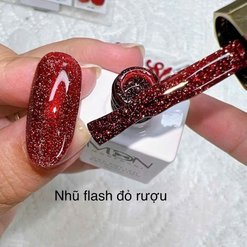Sơn gel móng tay nhũ flash đỏ, đen. Sơn cao cấp nhũ flash siêu bắt sáng chính hãng