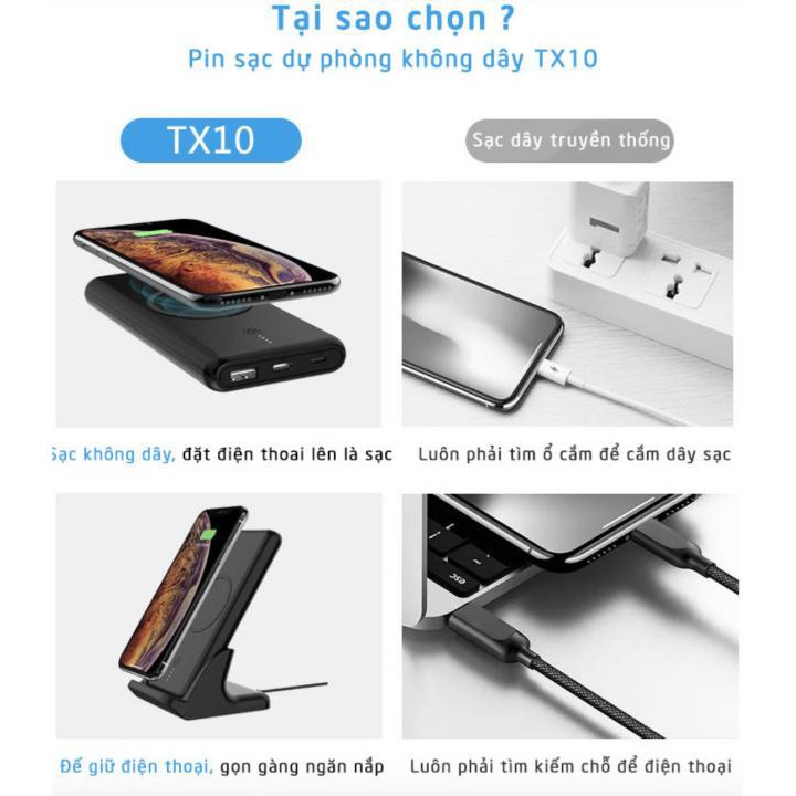 Pin sạc dự phòng 10000mAh 2in1 kiêm đế giữ điện thoại TX10 [Giá đẳng cấp]