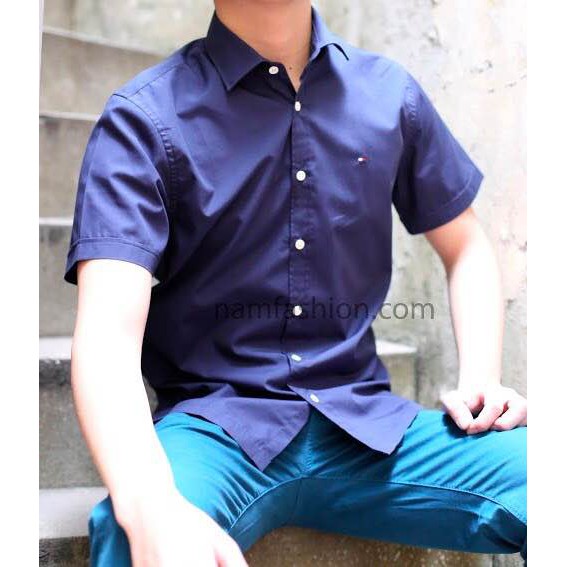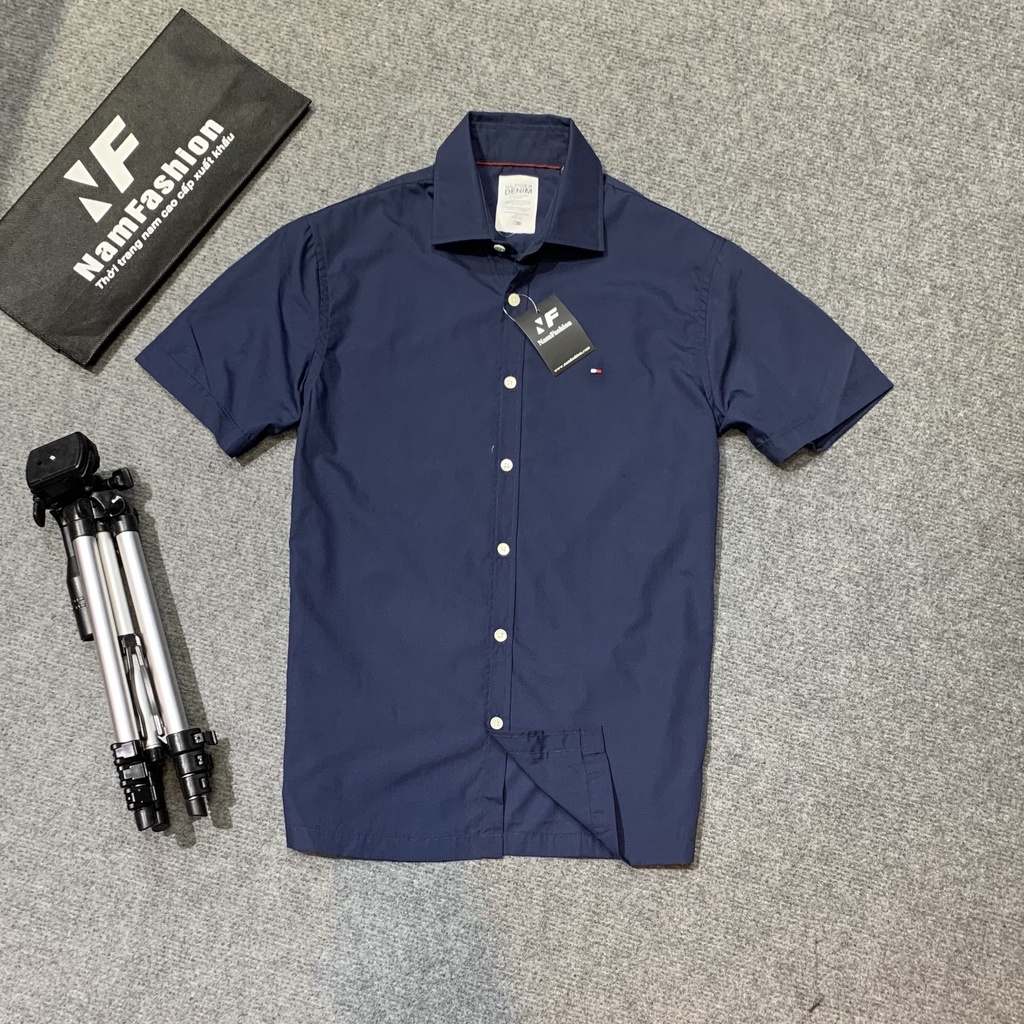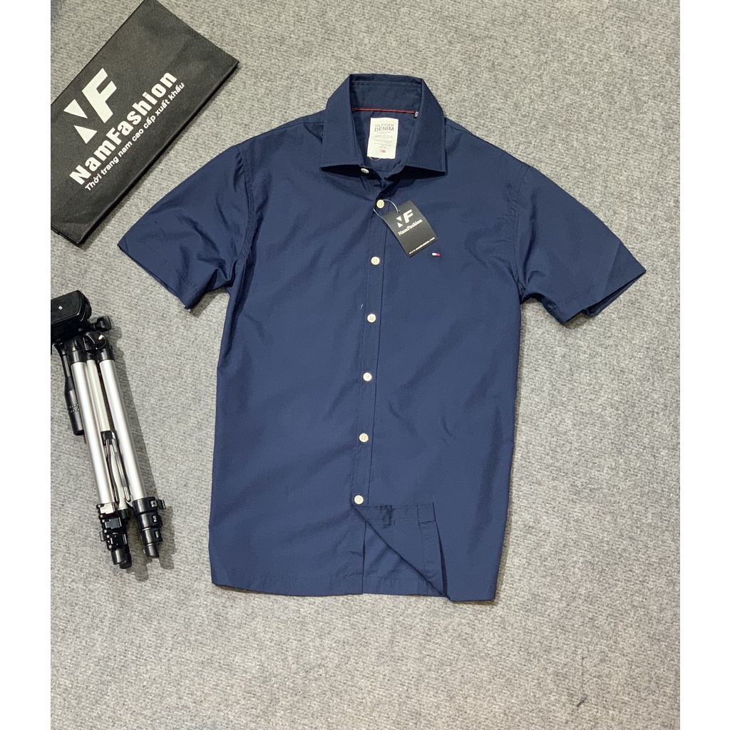 Sơ mi nam cao cấp vạt ngang xẻ tà xanh than xuất khẩu cao cấp NamFashion