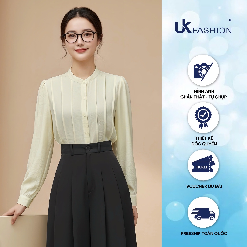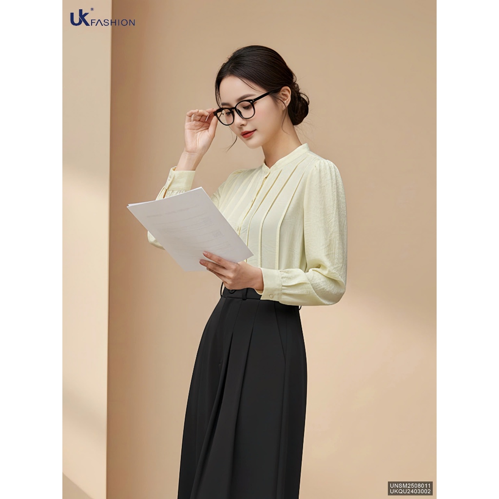 Áo Sơ Mi nữ UK Fashion tơ cổ tàu, chất liệu lụa không nhăn UNSM2508011