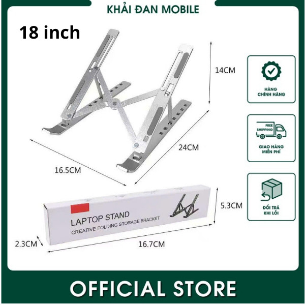 Giá đỡ laptop, Đế tản nhiệt laptop, macbook gấp gọn bằng nhôm điều chỉnh 6 cấp độ