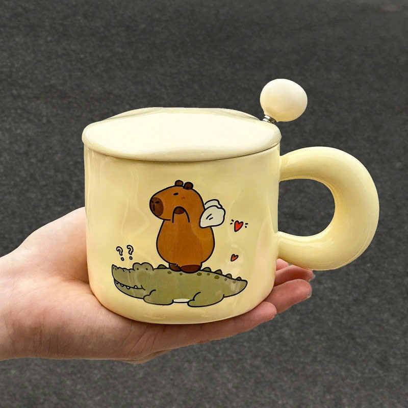 Bát sứ có tay cầm kèm thìa hình chuột lang Capybara,(bao bể vỡ)