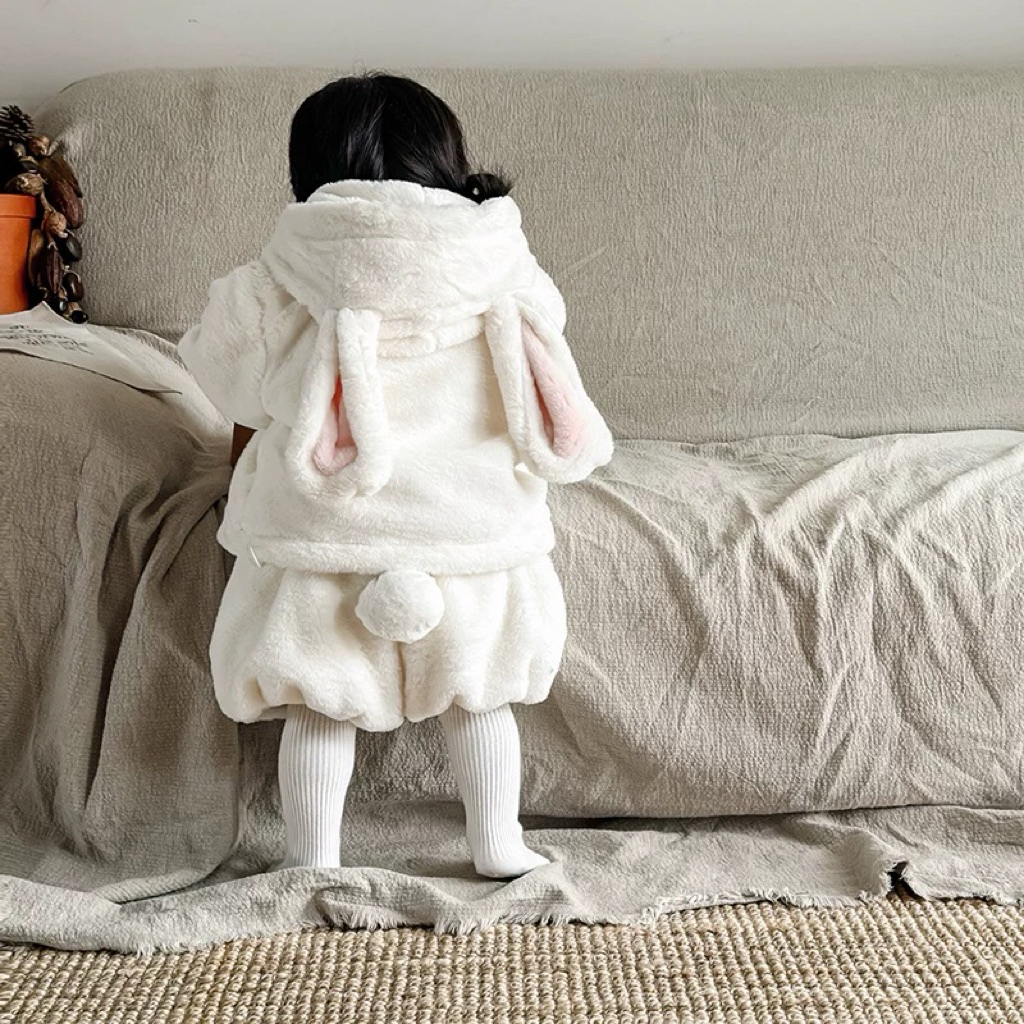 Bộ lông thỏ cho bé, bộ đồ con thỏ cho bé, bộ quần áo lông cho bé siêu ấm
