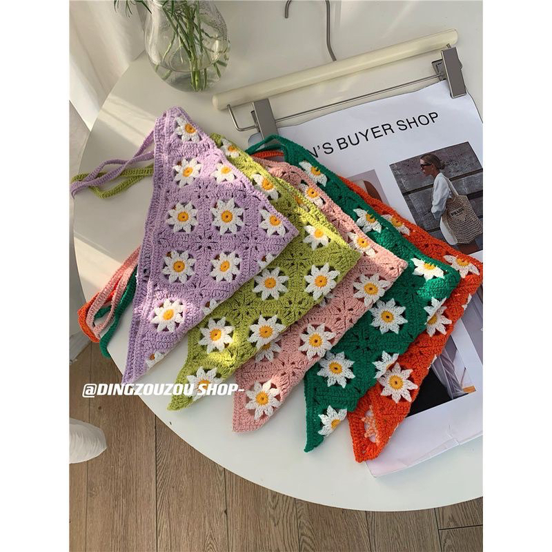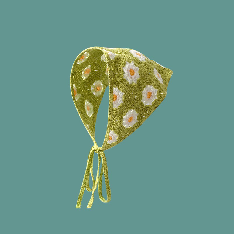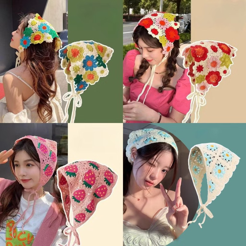 Khăn tam giác đội đầu, băng đô len, khăn turban dệt kim tam giác thêu hình đi biển hè 2024-Tiệm Cói Cô Lê