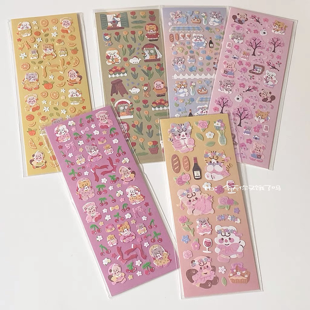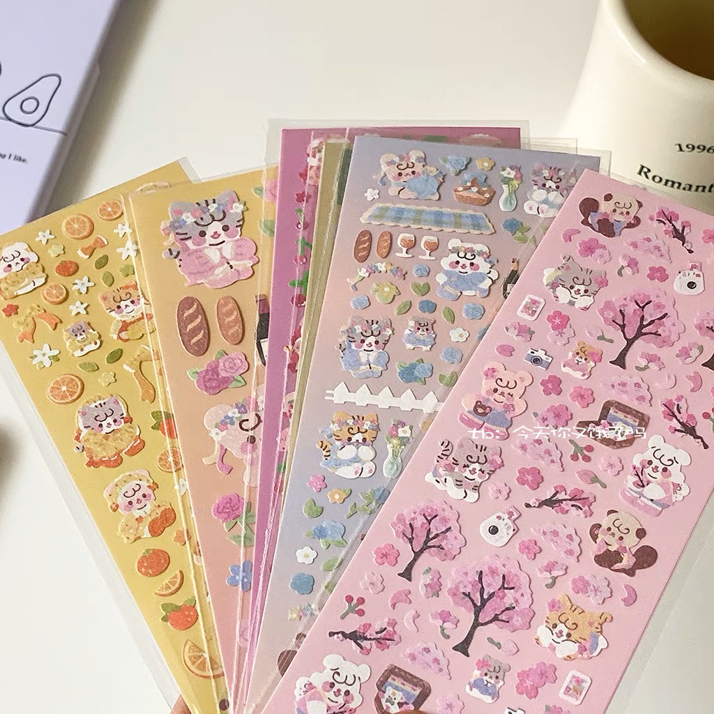 Sticker mini hoa anh đào, quýt, hoa tuy líp trang trí sổ, hộp bút, bullet journal, top loader