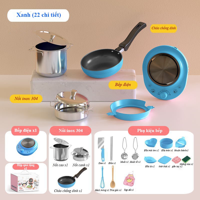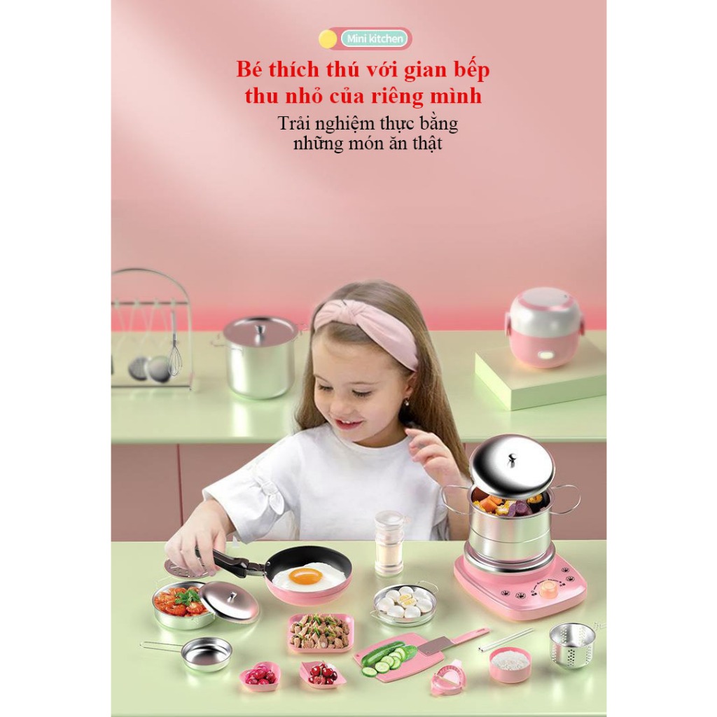 Bếp nấu ăn mini cho bé, đồ chơi nấu ăn thật chất liệu inox 304 với bếp điện giúp bé trải nhiệm về gian bếp thực tế