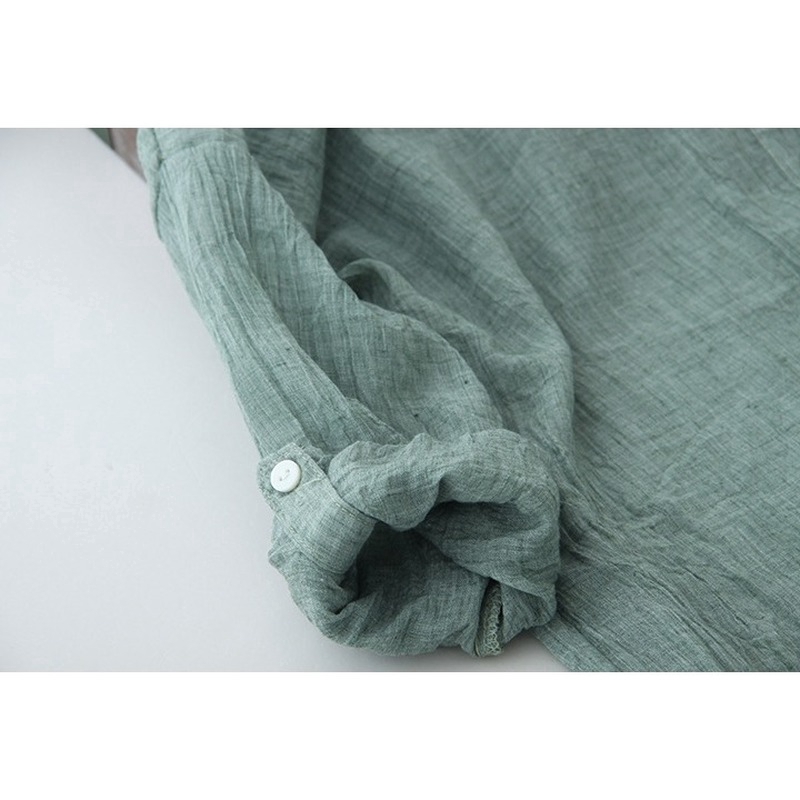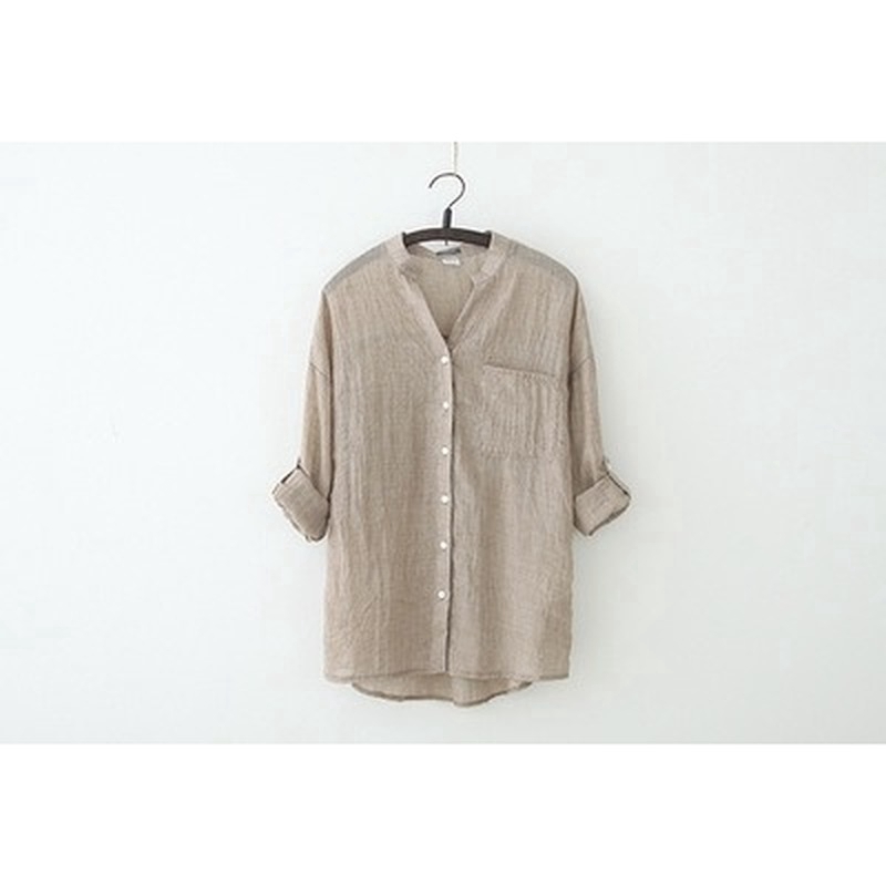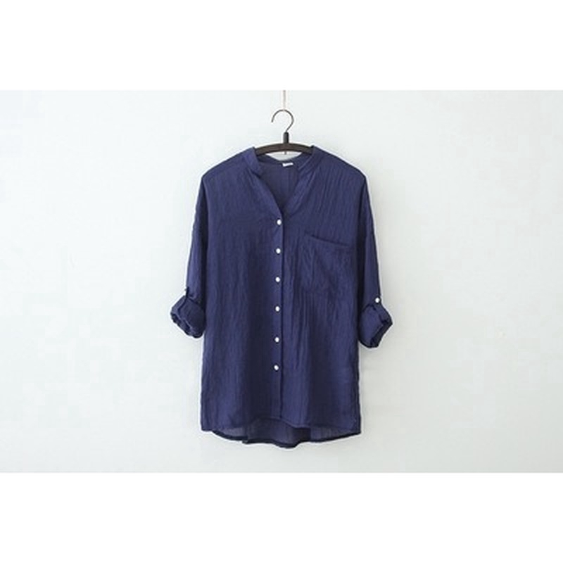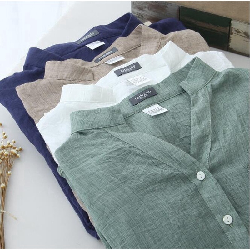 IELGY Nhật Bản Nhỏ Tươi Rời Vải Lanh Tay Bảy Điểm Cổ Áo Sơ Mi Vải Lanh Cotton Nữ