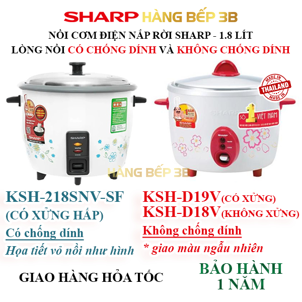 Nồi cơm điện nắp rời Sharp 1.8 lít KSH-D18V,D19V (giao màu mẫu nhiên) - BH 1 năm