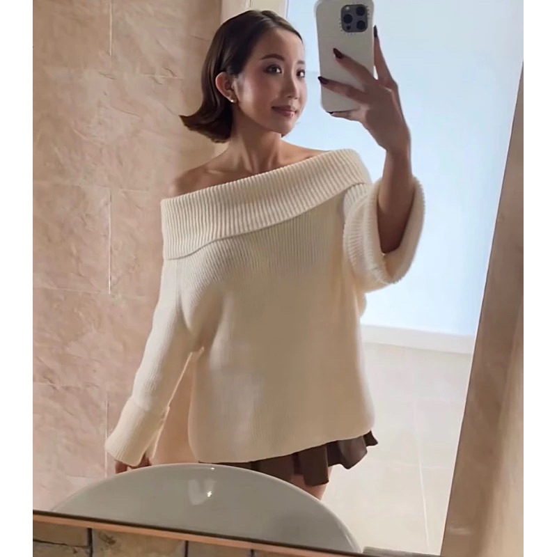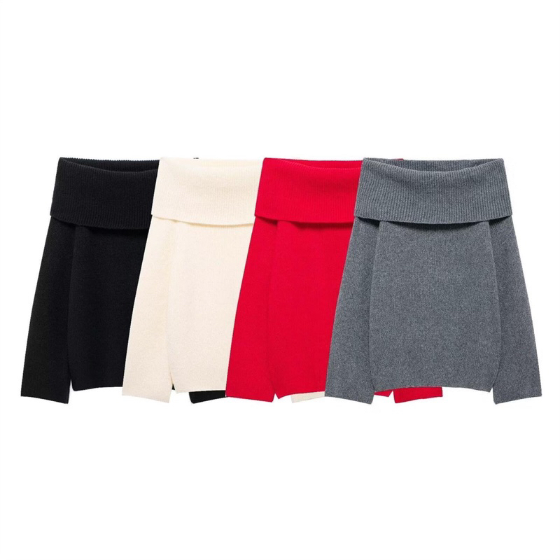 Áo Len Nữ Trễ Vai Form To Màu Trơn Phong Cách Âu Mỹ