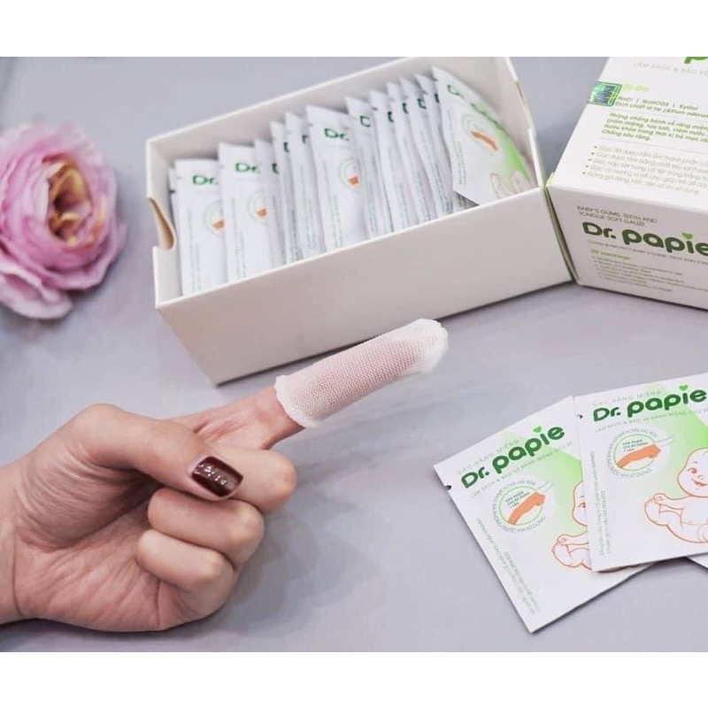 Gạc Rơ Lưỡi Dr.Papie Tiêu Chuẩn 5SAO, Làm Sạch Răng, Lưỡi, Nướu và Khoang Miệng Cho Bé - 30Gói/Hộp