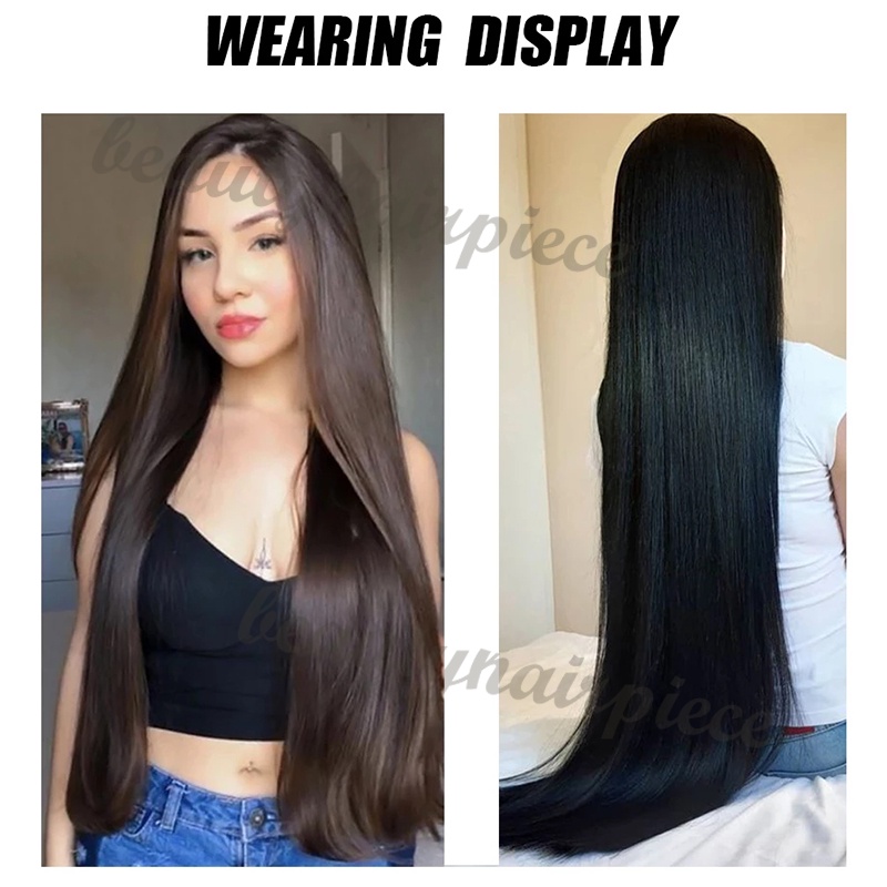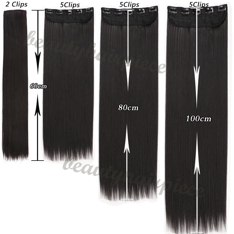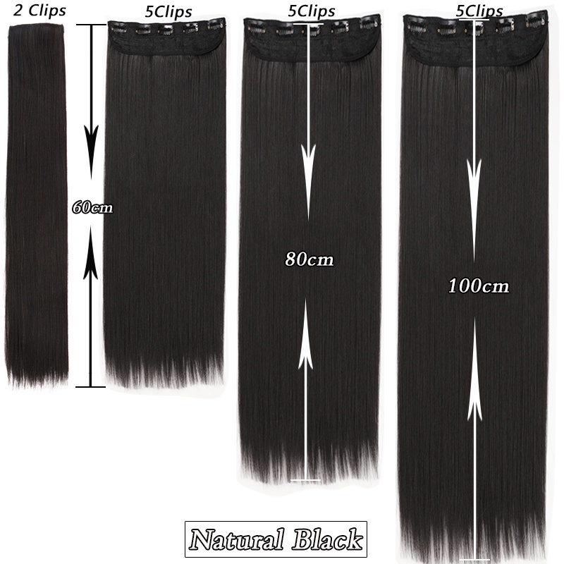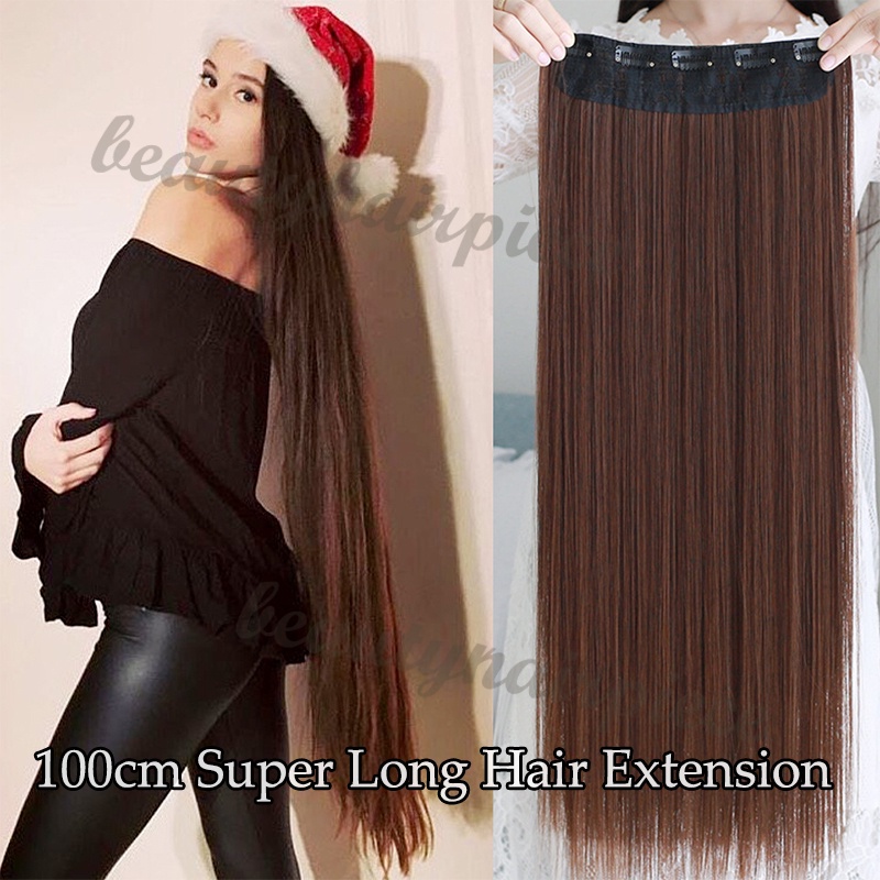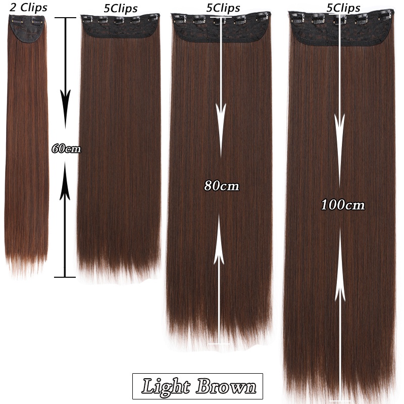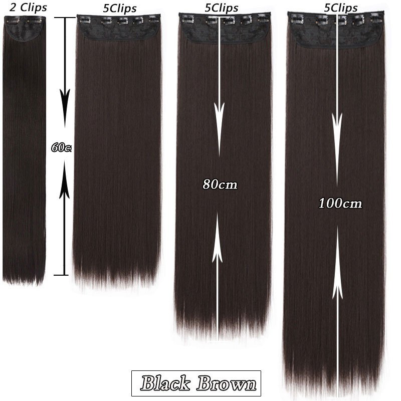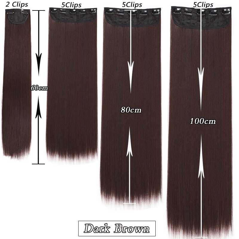 Tóc Giả Thẳng Dài 100cm Kèm 5 Kẹp Màu Đen / Nâu Bằng Sợi Tổng Hợp Tự Nhiên