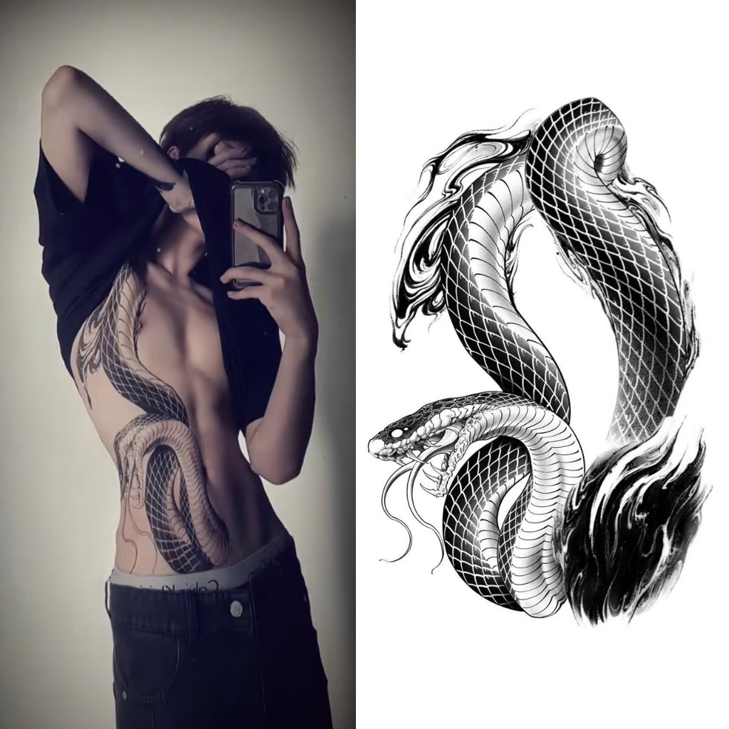 Hình Xăm Dán Mãng Xà Size Lớn, Chống Nước, Bền 3-5 Ngày, Unisex
