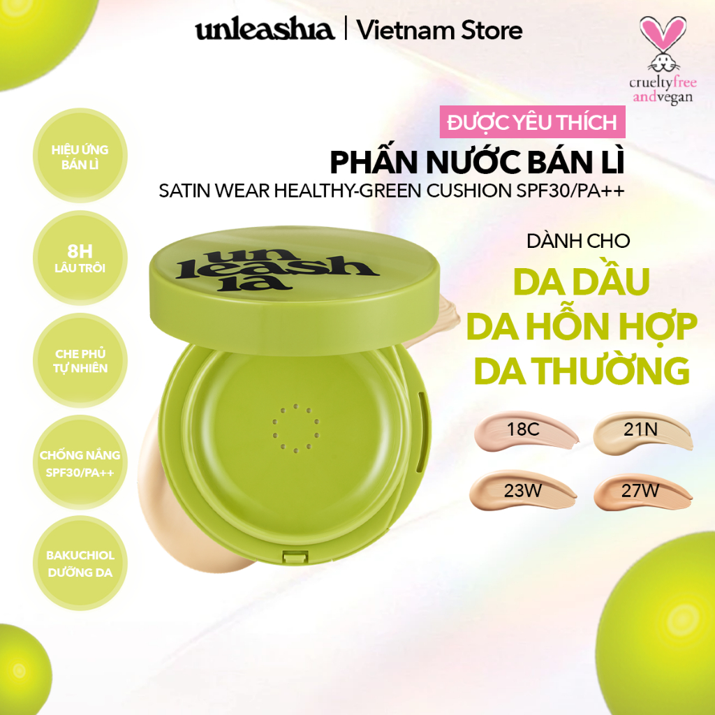 Phấn nước bán lì UNLEASHIA Satin Wear Healthy-Green Cushion SPF30/PA++ 15g